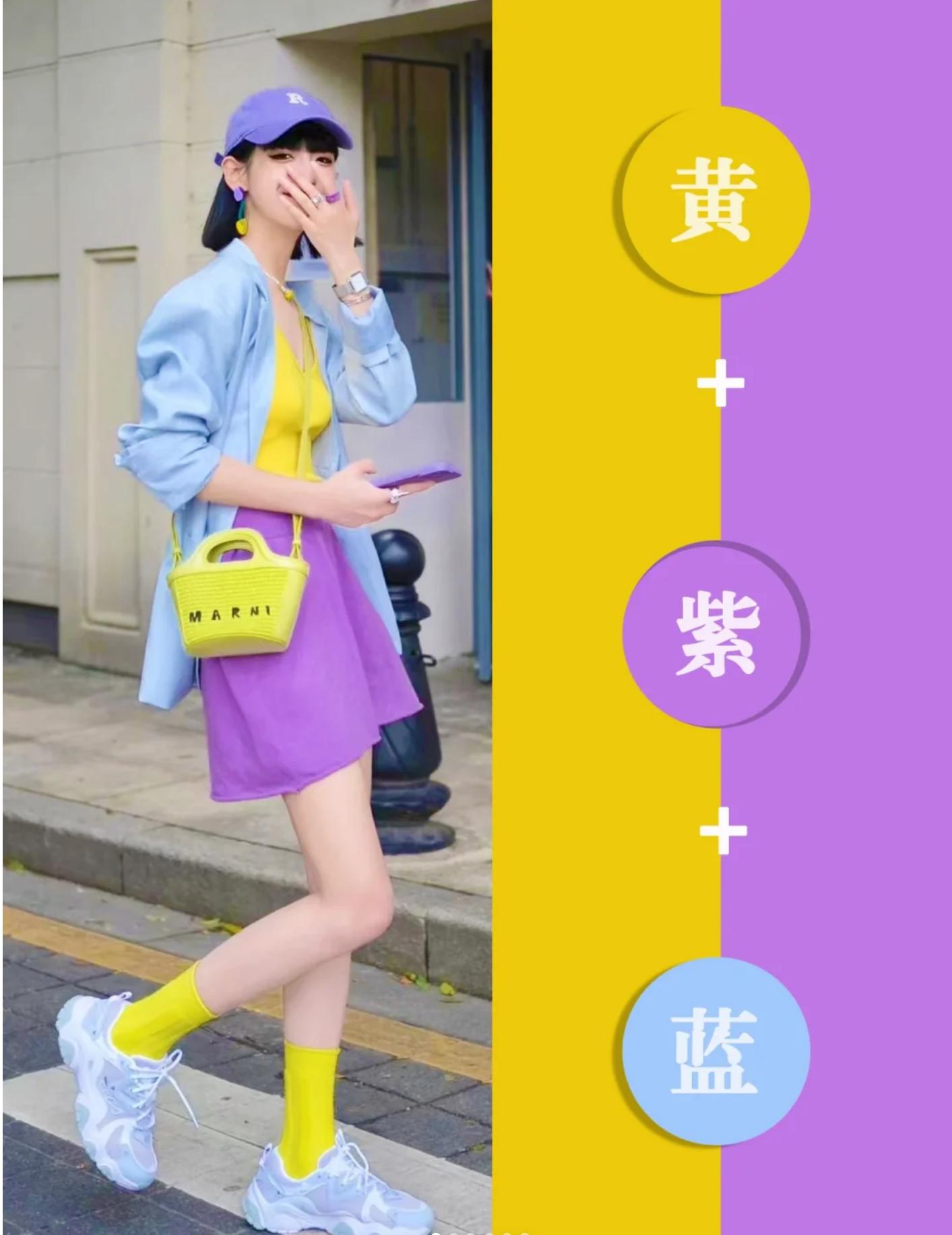④撞色搭配:顯瘦的色調可以在整體深色調的基礎上,搭配一件亮色上衣或配飾,如鮮豔的橘紅、亮黃或寶石藍,可以將人們的視線集中在亮點上,從而忽略身材的缺點。