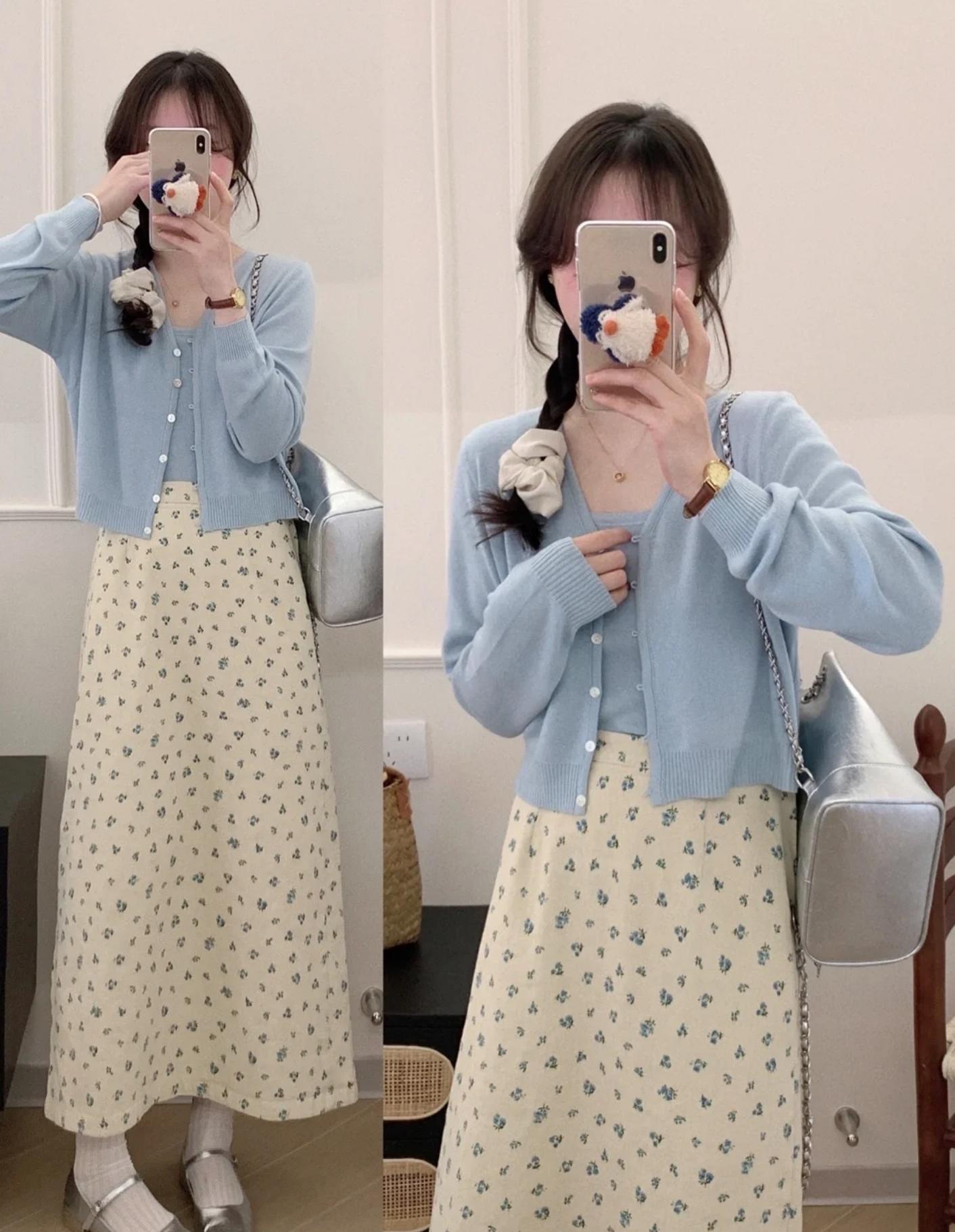 上身可搭配一件合身但不緊繃的V領或圓領針織衫,通過衣物的自然垂墜感和適度的寬鬆程度,既能展現優雅的氣質,又能有效地遮蓋腹部脂肪,達到顯瘦的目的。