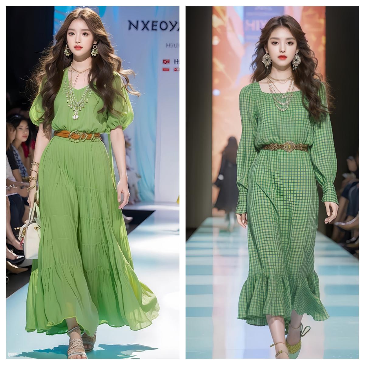 ②高腰連衣裙:腰部有褶皺、收腰設計或者腰帶裝飾,這些都能幫助凸顯腰線,同時也可以根據個人體型適當調整腰圍位置,讓腰部線條更加流暢自然。