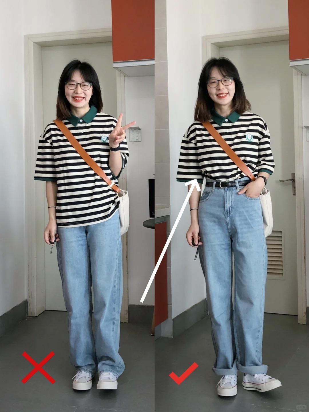 ①高腰褲:高腰牛仔褲、高腰闊腿褲可以將腰線提高至最細處,也就是胸下或肚臍上方的位置,從而拉長下半身比例,使整個人看起來更修長,有效遮蓋腹部脂肪,顯瘦效果顯著。