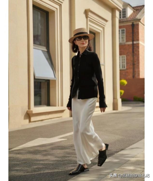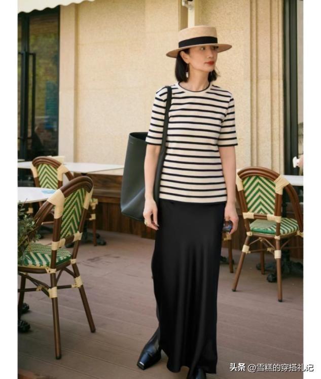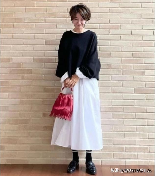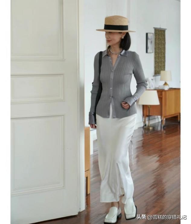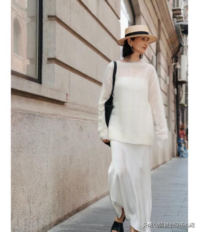 長裙的穿搭也是如影隨形的,可以伴隨着我們的穿衣一起發酵出時尚的魅力,因爲長裙的造型設計基本上是遮過膝蓋的,最近還比較流行,遮過腳踝的長度,這樣可以藉助面料縱向去優化身材的比例,維護造型的輕盈感,穿短款上衣就很好看。