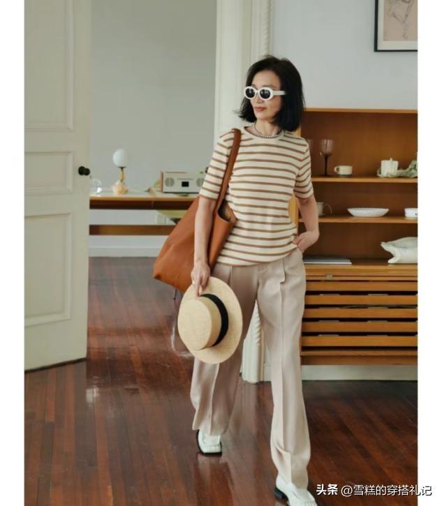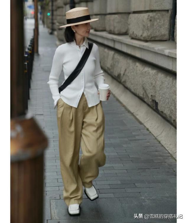 帶輪廓褲裝的款型儘量不要服帖腿型,避免穿出腿部線條的問題,而且腿部肉感也不會暴露,穿出空間感纔會更顯瘦,鬆鬆垮垮的褲裝,還可以達到一點拖地的效果,更好的去延長縱向比例的走向。