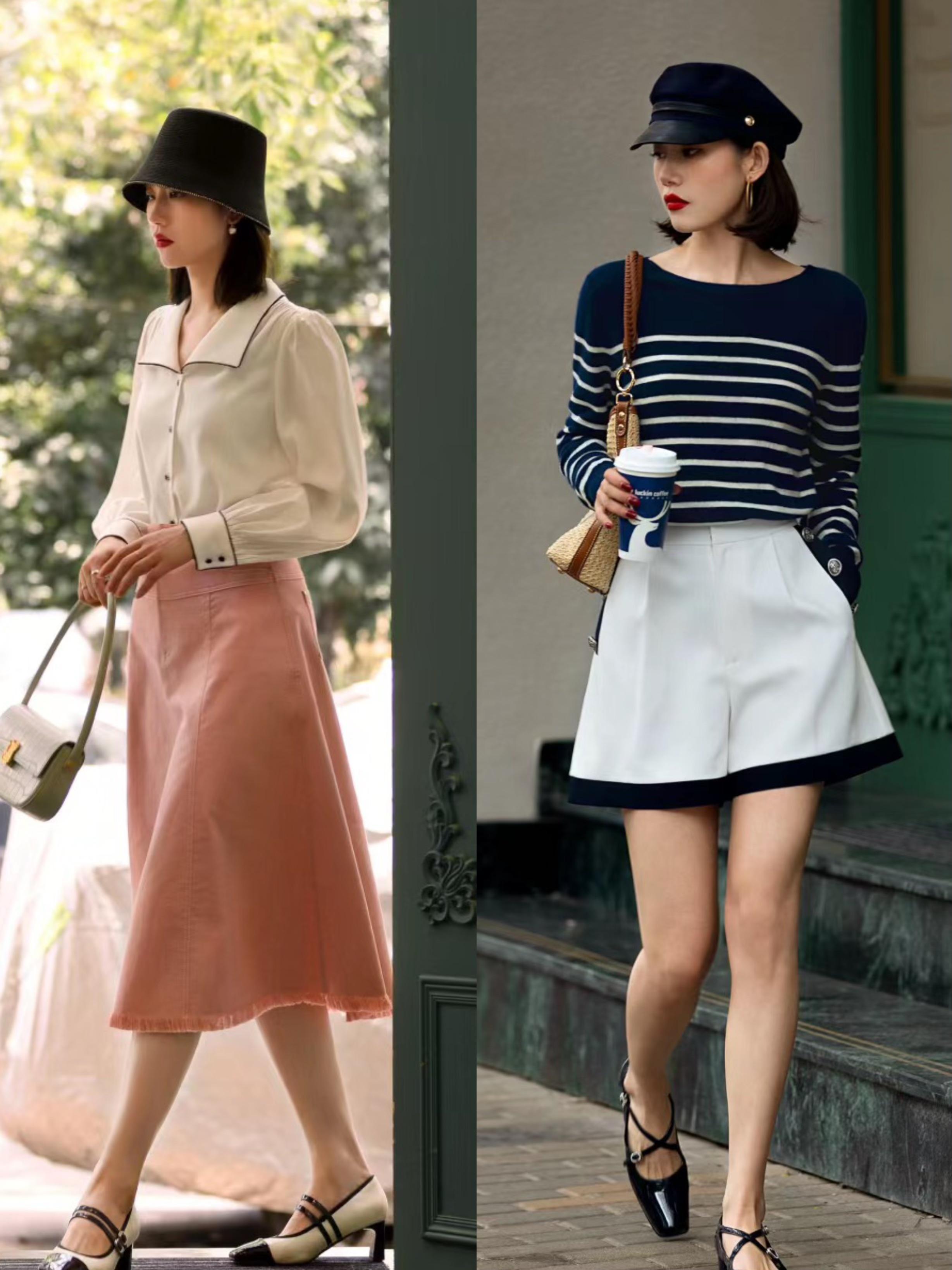 春夏季節的穿搭,也需要注意一定的比例感呈現。不管是針織衫還是襯衫,都可以配高腰的半身裙,勾勒出高腰線、搭配小露膚,輕盈又時髦。