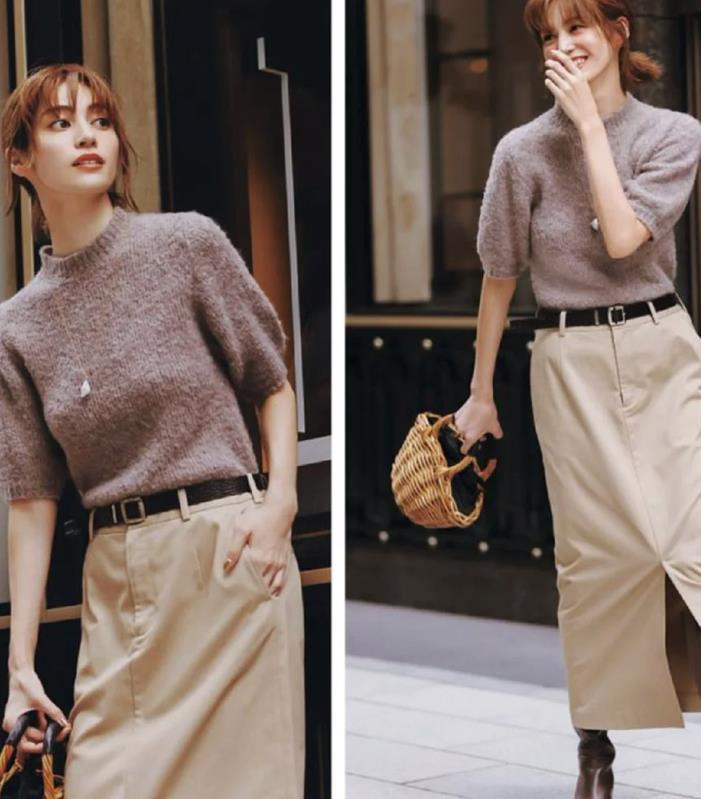短袖針織+半裙的組合,不僅適合日常休閒,也適合在約會、聚會的場合,在炎炎夏日,選擇一件冰絲薄款針織短袖,再搭配一條半裙,輕鬆駕馭時尚與溫柔。
