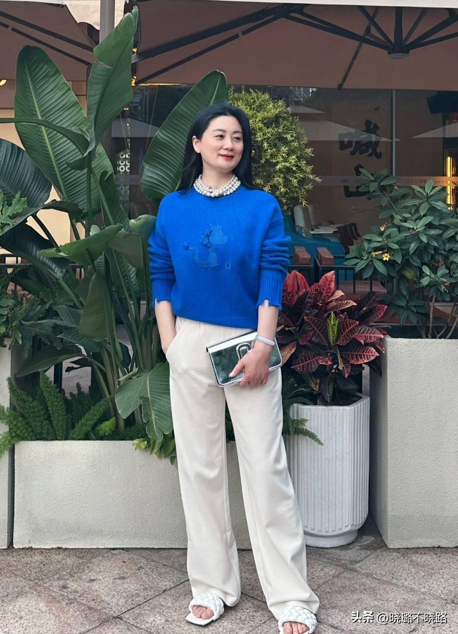 ★優勢解讀:從古至今,寶藍色都會用於特別高檔的服飾和名畫當中,所以它也很高貴奢侈掛鉤,穿在身上不僅抬氣質,還具備襯膚顯白的功效,很適合40+的姐姐。