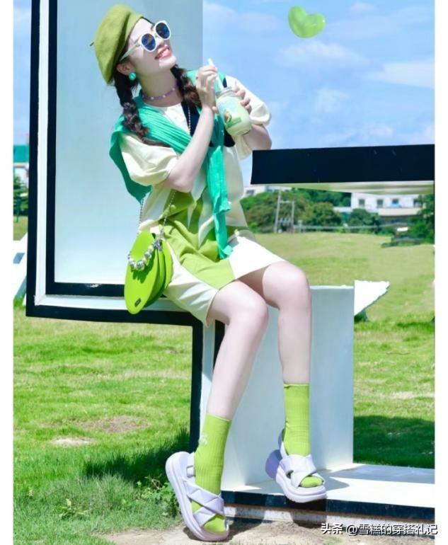 當你對綠色還存在偏見的時候,牛油果綠色已然成爲當下短裙短褲的優選色彩,這是一種以牛油果肉爲主色調的清爽綠色,特別適合用來點綴在帽子,短襪或者是包包這一類小單品上來,形成一種視覺上的提亮色彩。