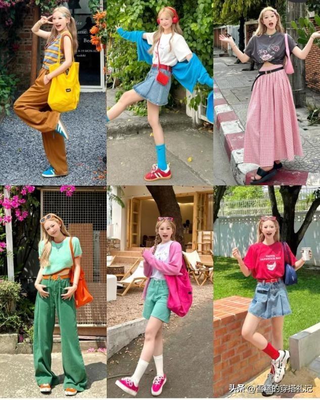 對於彩色系的運用,很多女生其實都不敢踏出第一步,那些高亮的色彩,如果想要融合到日常休閒的穿搭當中,我們可以從1到2種顏色進行入手,只選擇兩種顏色進行混搭,主次分明,也不容易顯得凌亂。