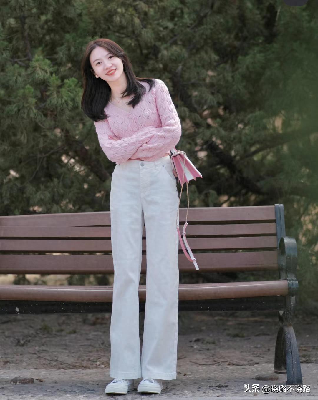 在選擇闊腿褲的時候,版型是尤爲關鍵的。衆所周知,闊腿褲最大的優勢在於寬鬆的輪廓,不僅遮肉,而且穿起來格外的休閒洋氣。但是過分寬鬆的版型也有一個無法忽視的問題,就是會顯得腿部格外的笨腫,很容易壓低個子,因此大家儘量選擇褲腿呈現h型的闊腿褲,筆直的線條有利於降低橫向寬度,視覺上更加顯瘦。或者選擇面料輕薄、寬鬆無垂感的闊腿褲,微微的將褲腳捲起來。看着更加的有氣質。