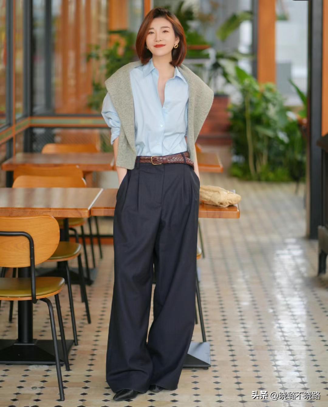 腿長佔有優勢的女人,可以選擇稍微長一些的闊腿褲,上身會更加的幹練有氣場一些,搭配上稍微露出腳背的淺口鞋或者露出腳後跟的穆勒鞋等等,可以襯托的下半身更加的利落一些。