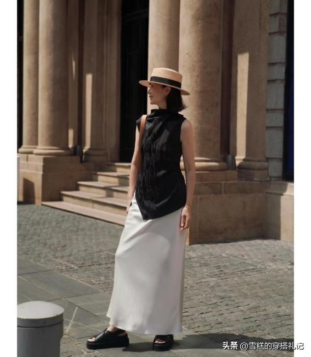 就好比圖中這樣長裙和短款上衣的銜接,我們可以對比出身材曲線的延展性,在任何場合都可以維護你的身材優勢。
