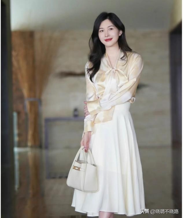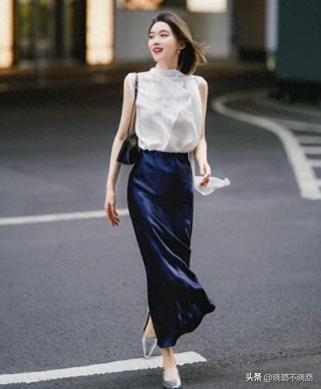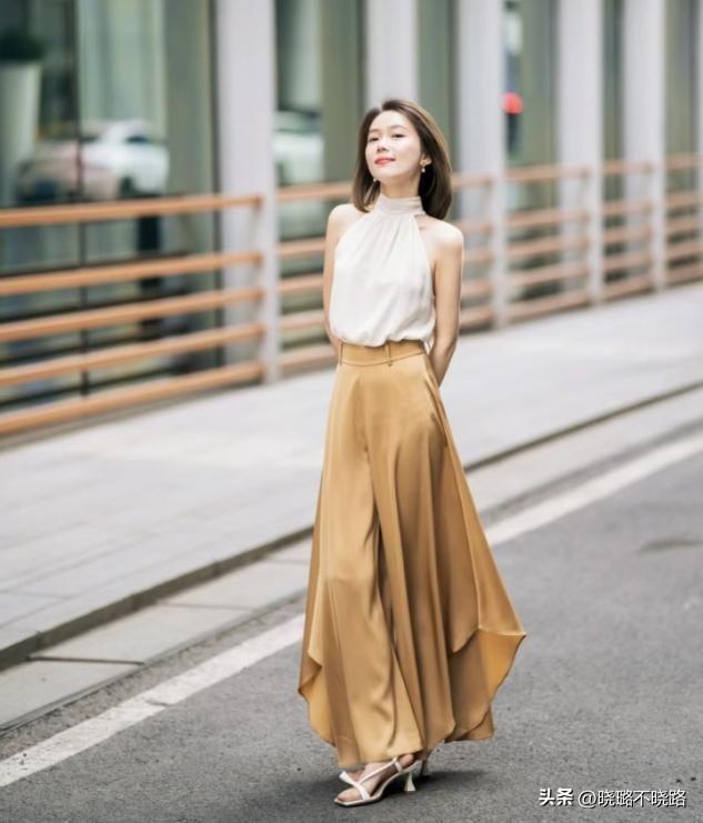無論是穿裙裝還是褲裝,比較具有分量感的單層面料都是造型高級感的來源,特別是能夠把握你穿衣舒適度和視覺高級感的那些蠶絲或者緞面着裝,真的很適合50歲以上的中年女性去大膽的嘗試。
