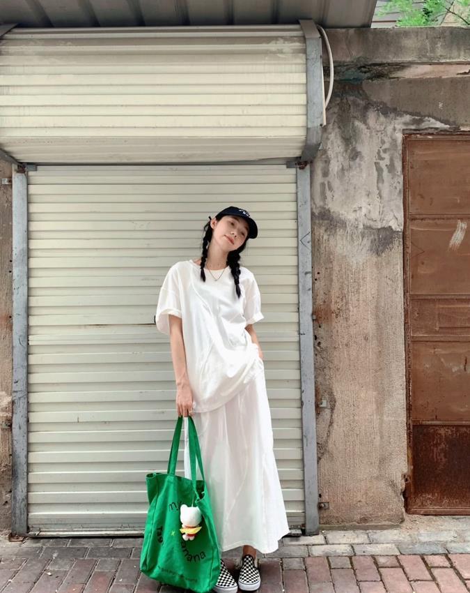 不管你現身在什麼場合,咖啡廳,還是大街小巷裏,t恤與白色半身長裙的搭配,都可以讓你成爲焦點,簡單的基礎款,組合在一起,就是非常的時髦和高級。