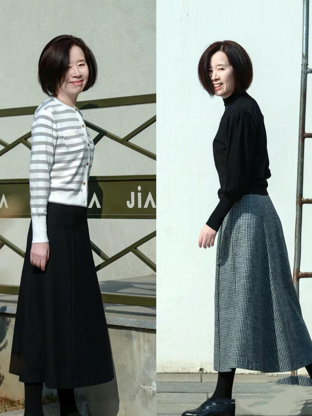 腰粗、臀肥、腿型不好的人羣,都可以用大量感半身裙來遮瑕。高腰的半身裙,配大量感的 裙襬,不僅舒適有度、也表現出從容與大方,搭配樂福鞋更添精緻感。