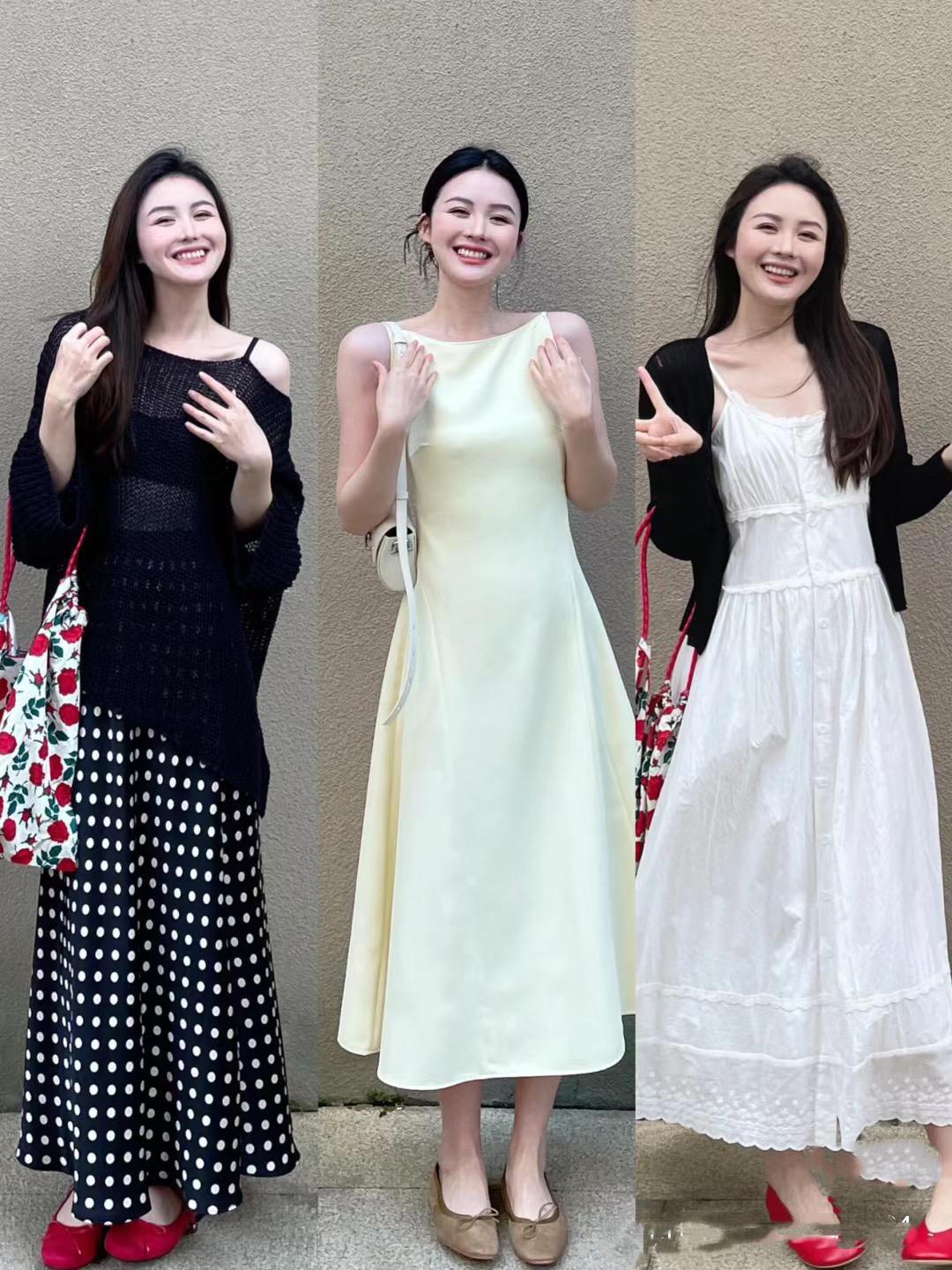 即便沒有明亮的色彩,依然可以塑造出清爽感。比如黑色吊帶裙+灰色薄襯衫的搭配,就高級清爽、更適合春夏季節。