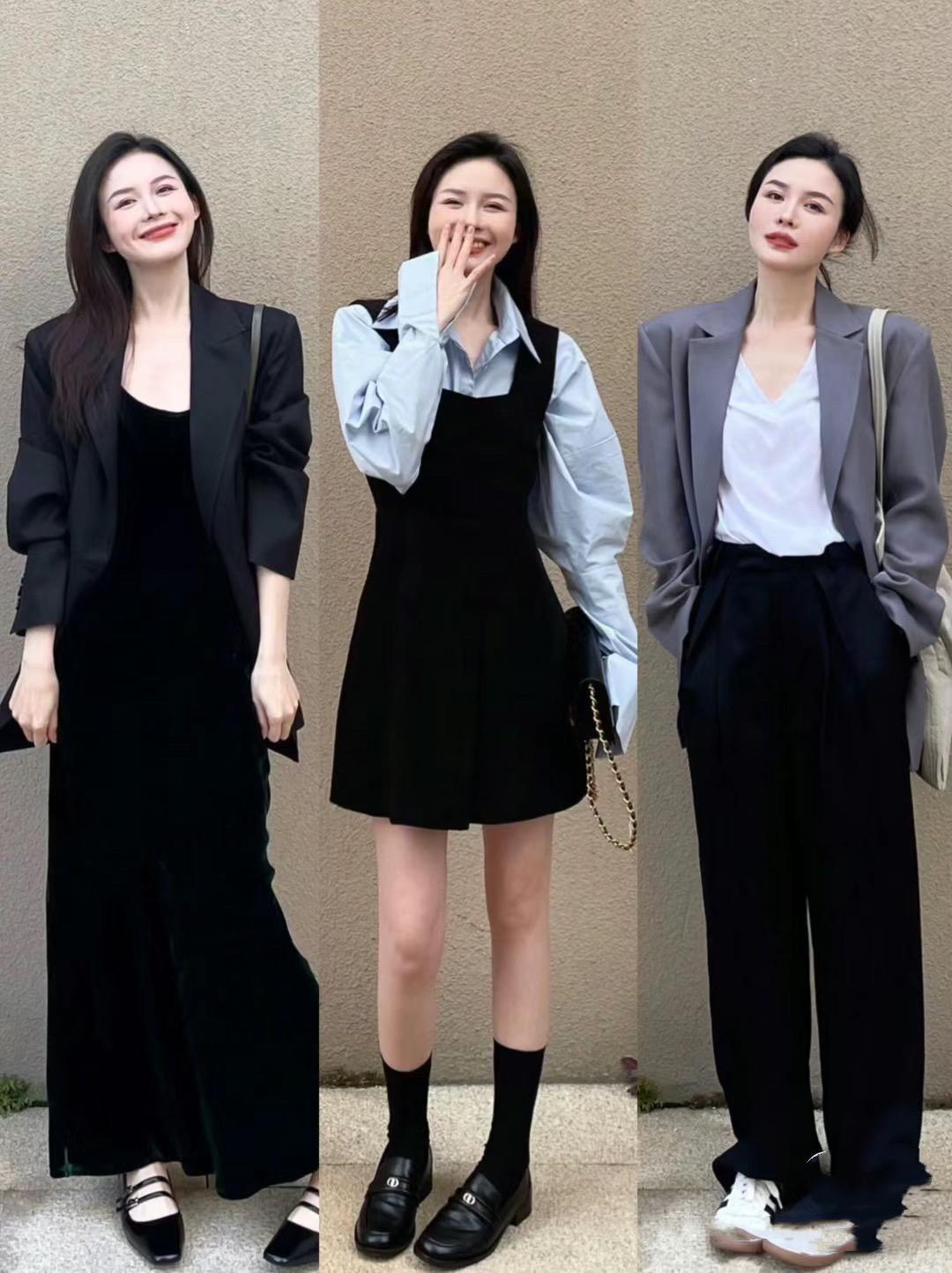 以修身的黑色吊帶裙作爲內搭,不僅壓縮視覺比例更加顯瘦,也多了幾分輕盈感。修身的黑色吊帶裙,配上寬鬆的襯衫,簡約高級、又時髦大方。