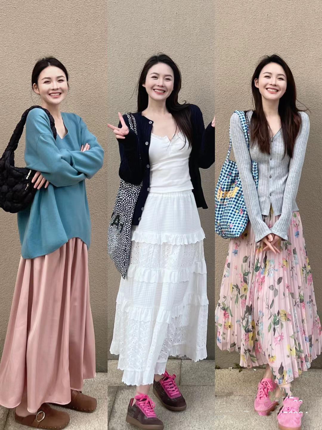 腰臀部肥厚、大腿粗壯、體型不夠完美的女性,都可以選擇這種修身針織衫+高腰傘裙的搭配。傘裙大量感的裙襬,將女性下半身的體型不足完美掩蓋。