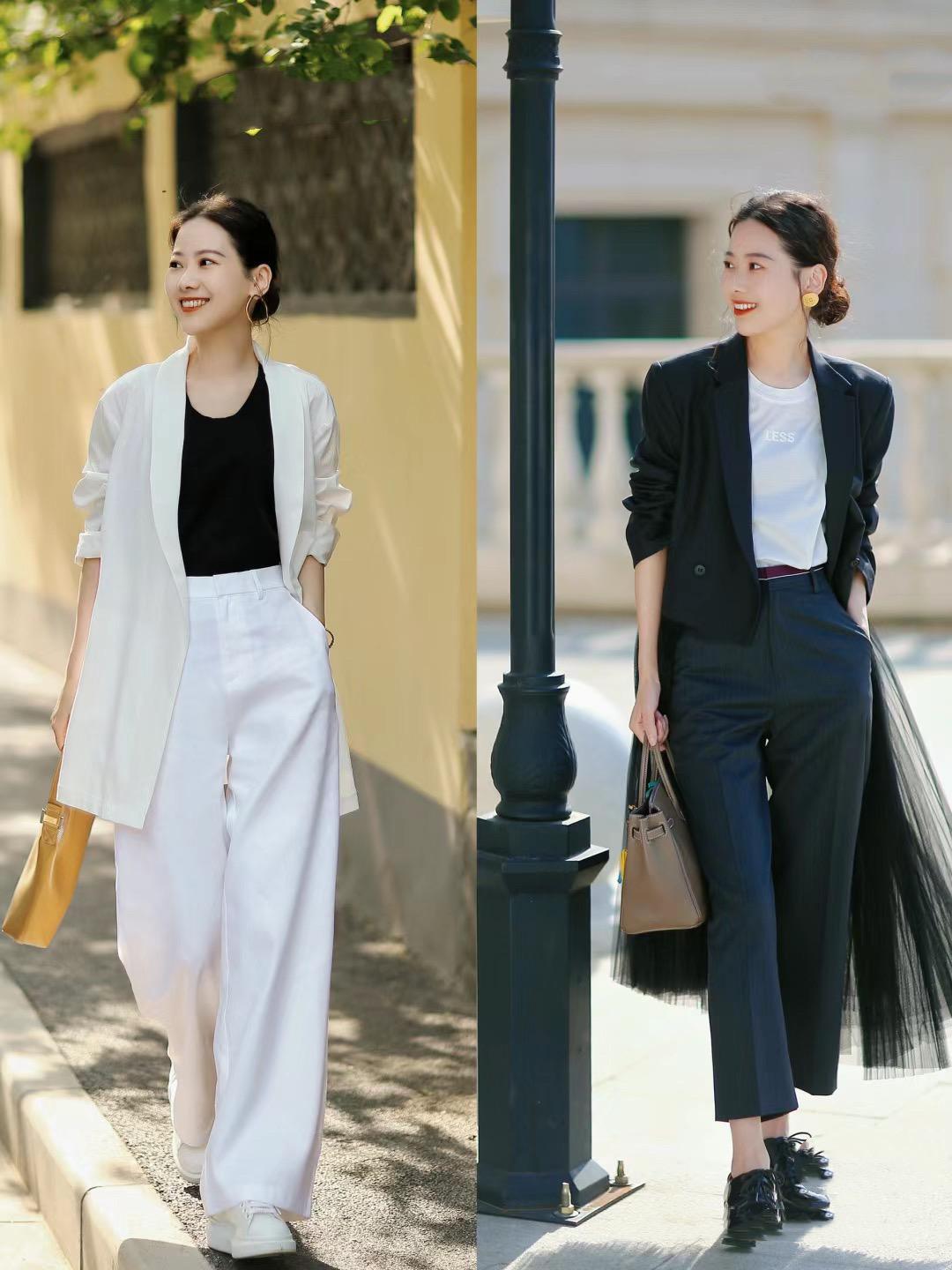 一條高腰的闊腿褲,可以塑造出高級時尚的美。簡單且寬鬆的西服外套,配上白色/黑色/牛仔藍色闊腿褲,可以展現出更加隨性自在、時尚又醒目的美。