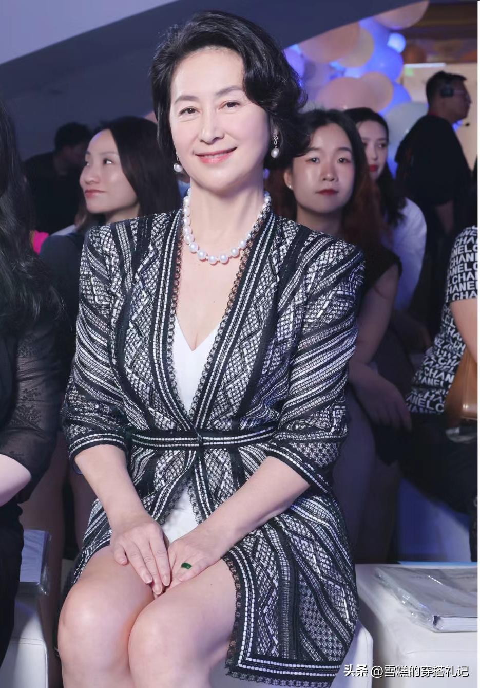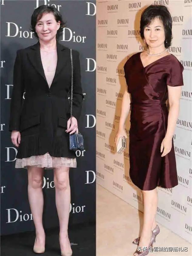 而觀察何超瓊的裙裝搭配,你會發現它在正式場合很少穿絲襪,反而直接露腿穿裙子,顯得整個人更加的輕盈透氣,而且所有的裙裝基本上是套裝的組合,上下銜接非常自然,看着得體優雅。對於大齡女性來說,怎樣裙裝穿得更加華麗貴氣,完全可以多像何超瓊,這樣直接選擇套裙,簡單方便,輕鬆收穫高級感。