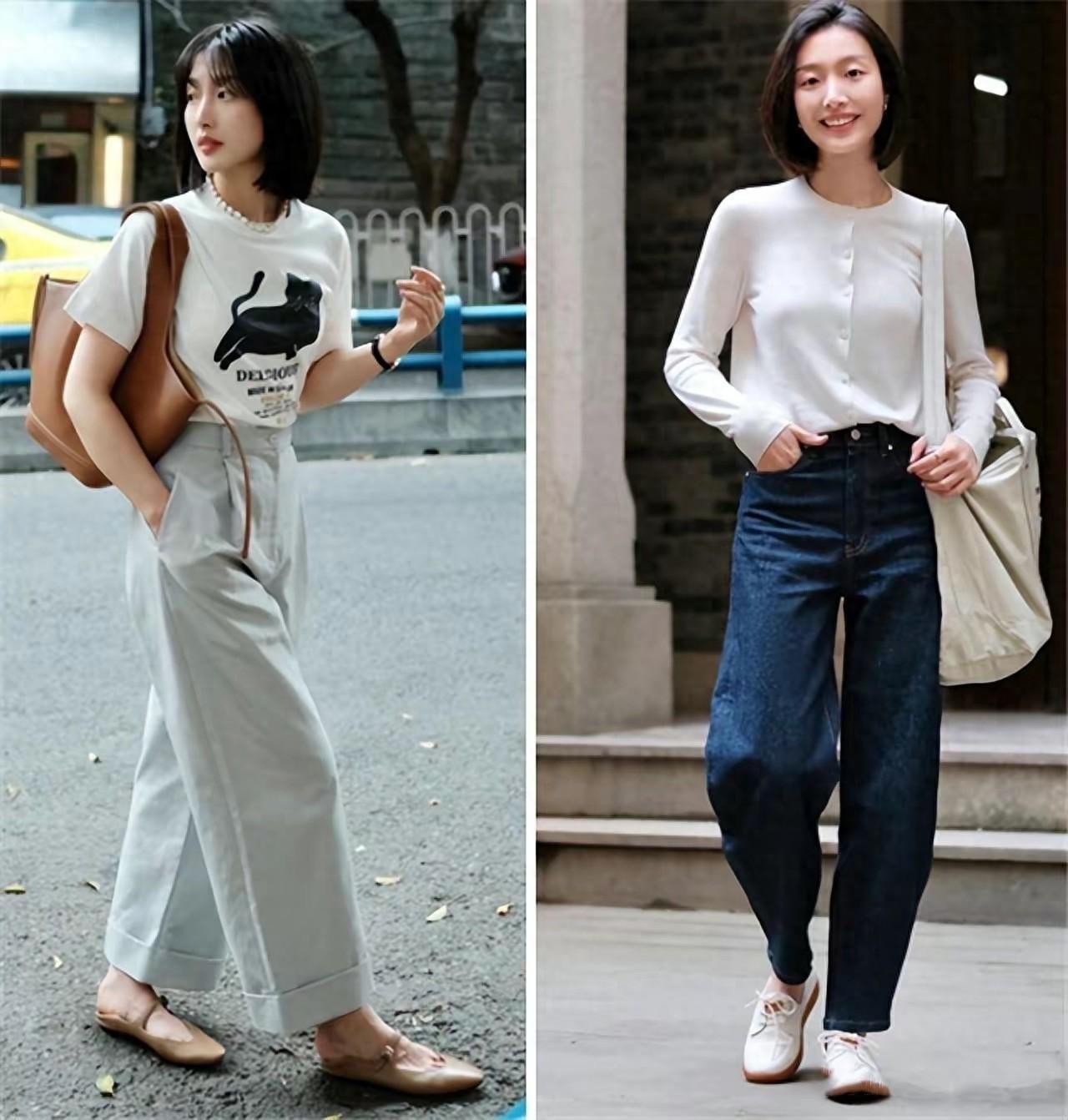 寬鬆且垂墜的齊踝褲,具備了更強的修飾性。我們可以用齊踝褲來搭配平底的板鞋、或者淺口單鞋,舒適又隨性,簡約又大方,這纔是真正的高級。