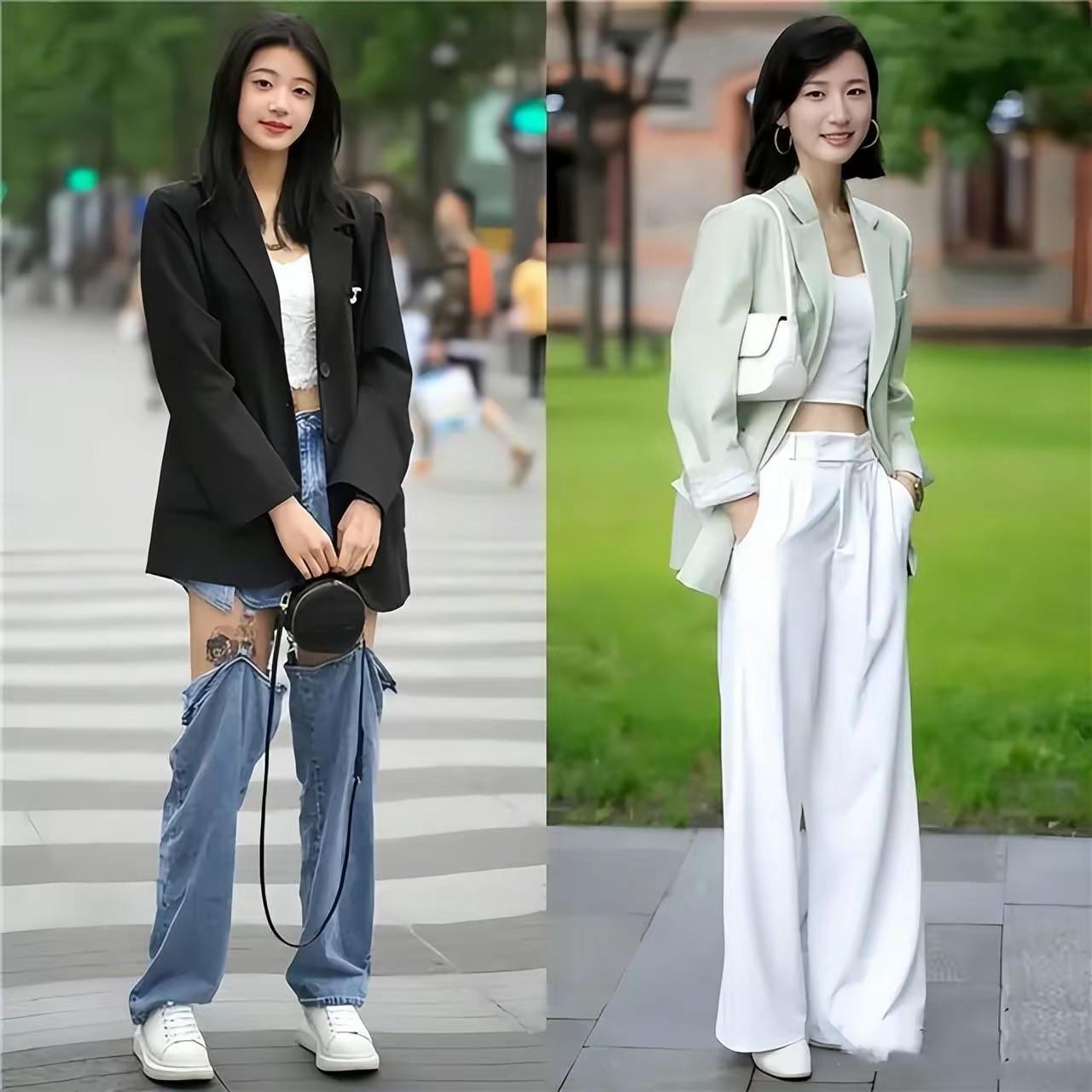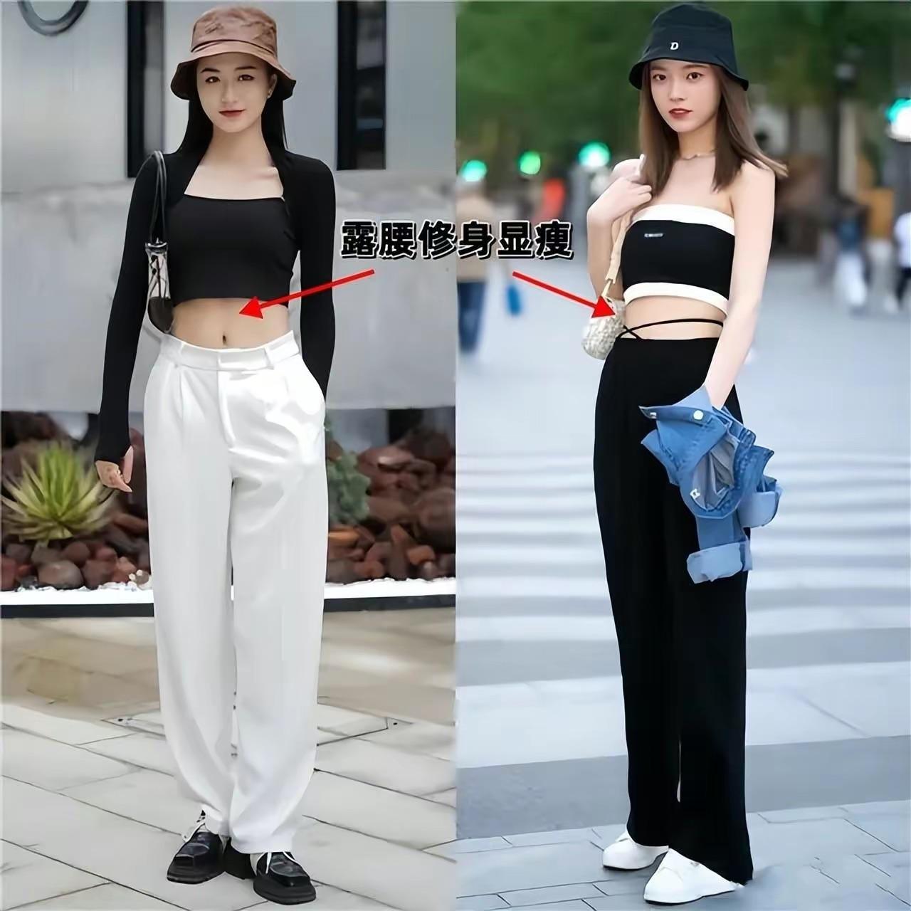 比如露腰的抹胸,或者露臍的上衣,都可以具備更加醒目的效果。搭配高腰的西裝褲,熱辣隨性。西裝褲是齊踝的長度,優雅大方又高級顯瘦。