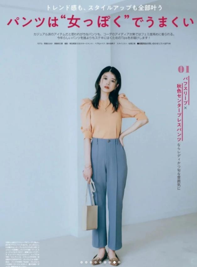 衆所周知,九分褲的長度是到腳踝的位置,將腿部最纖細的部位露出來,可以讓你穿出更輕盈的造型,而加入平底鞋後,則多了幾分休閒舒適。