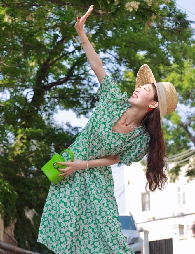 綠色的裙子,不僅可以把膚色襯托得很白皙,還能讓人在視覺上感受到清爽氣息,特別適合在炎熱夏季和春天穿。