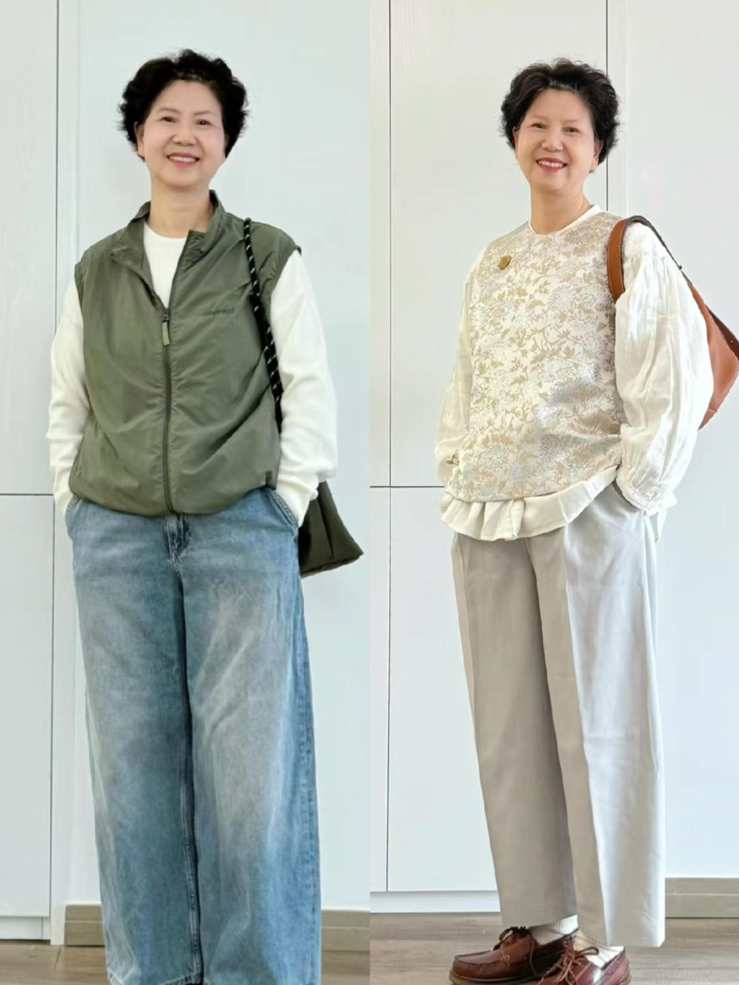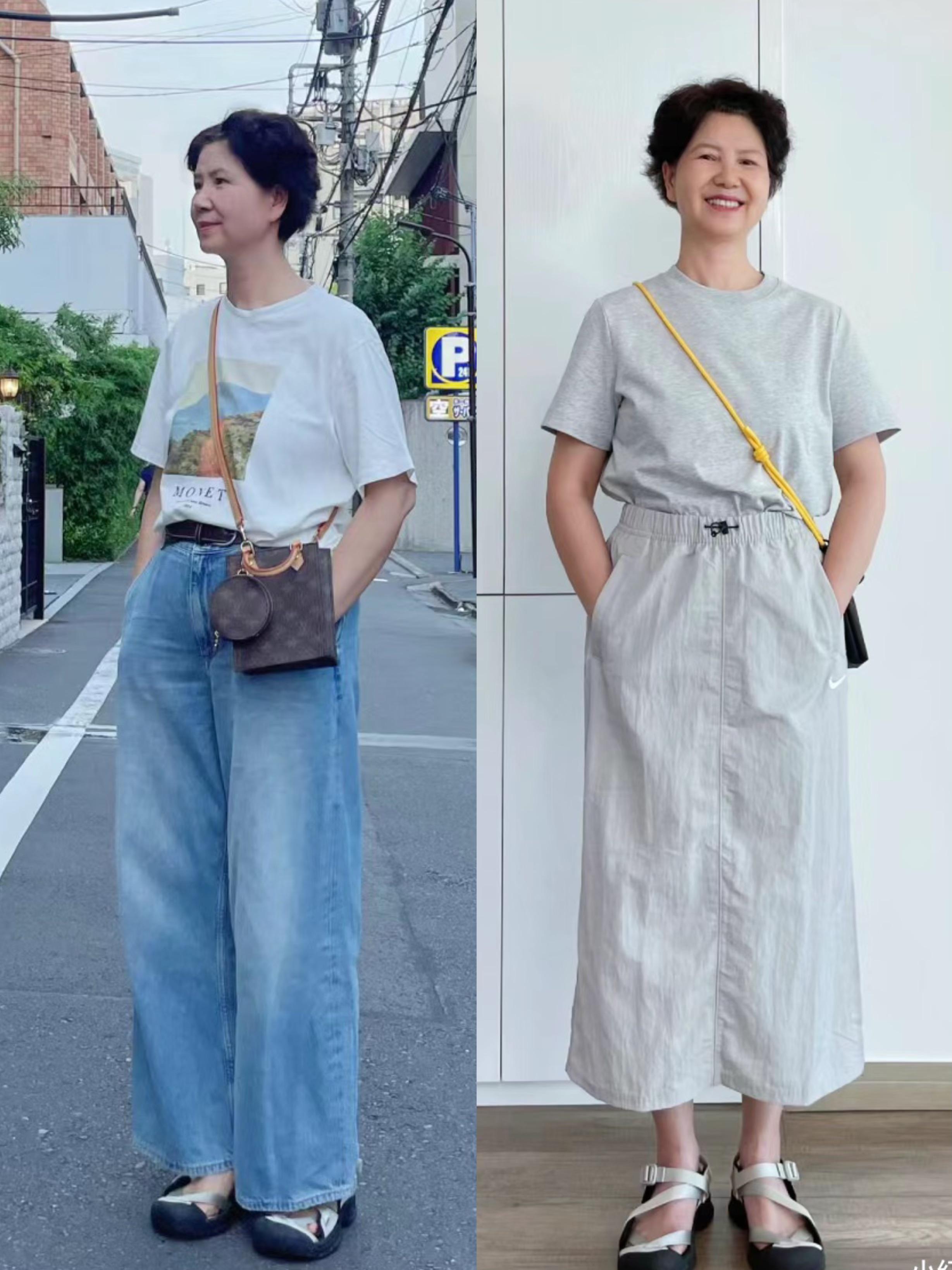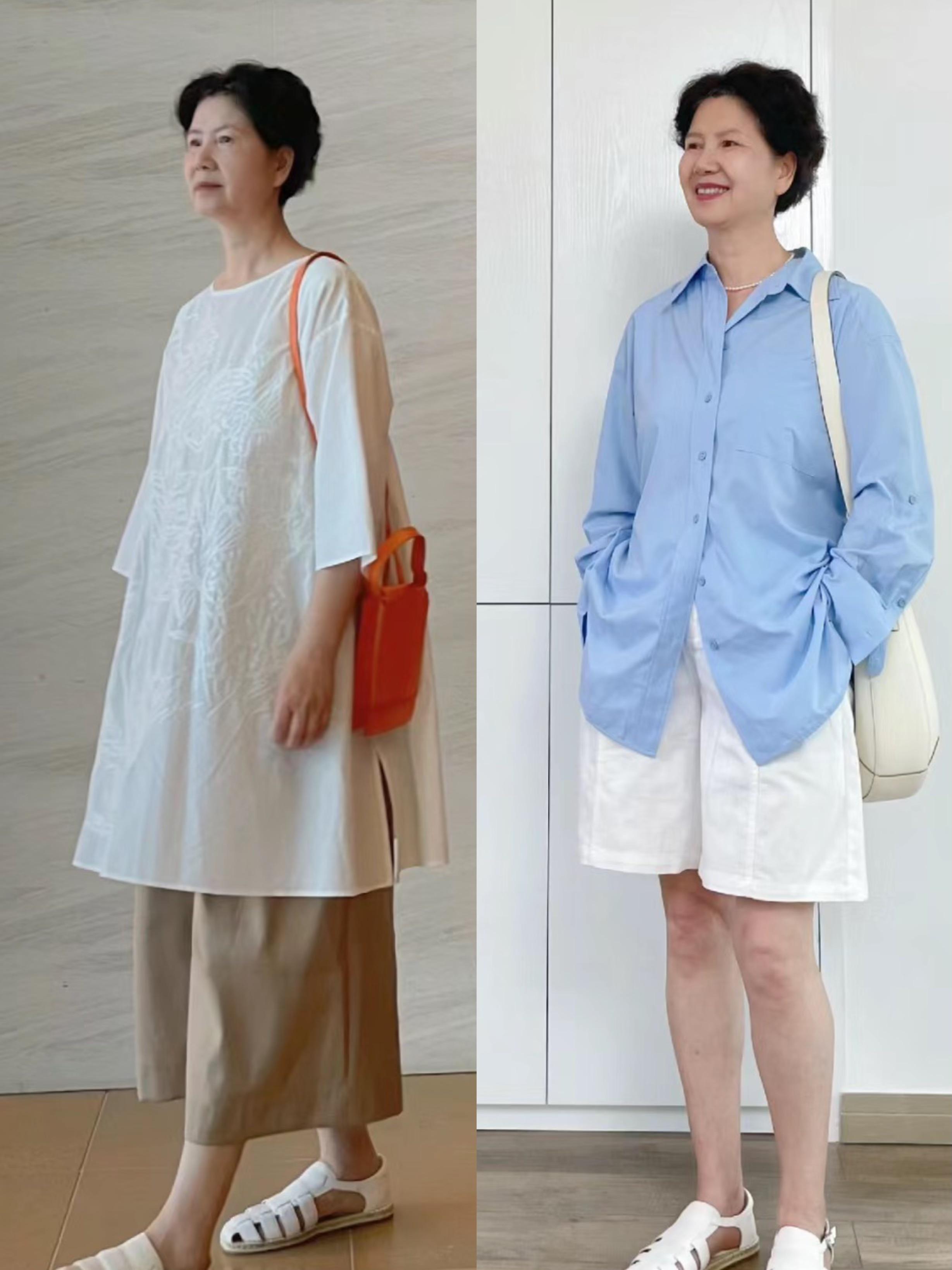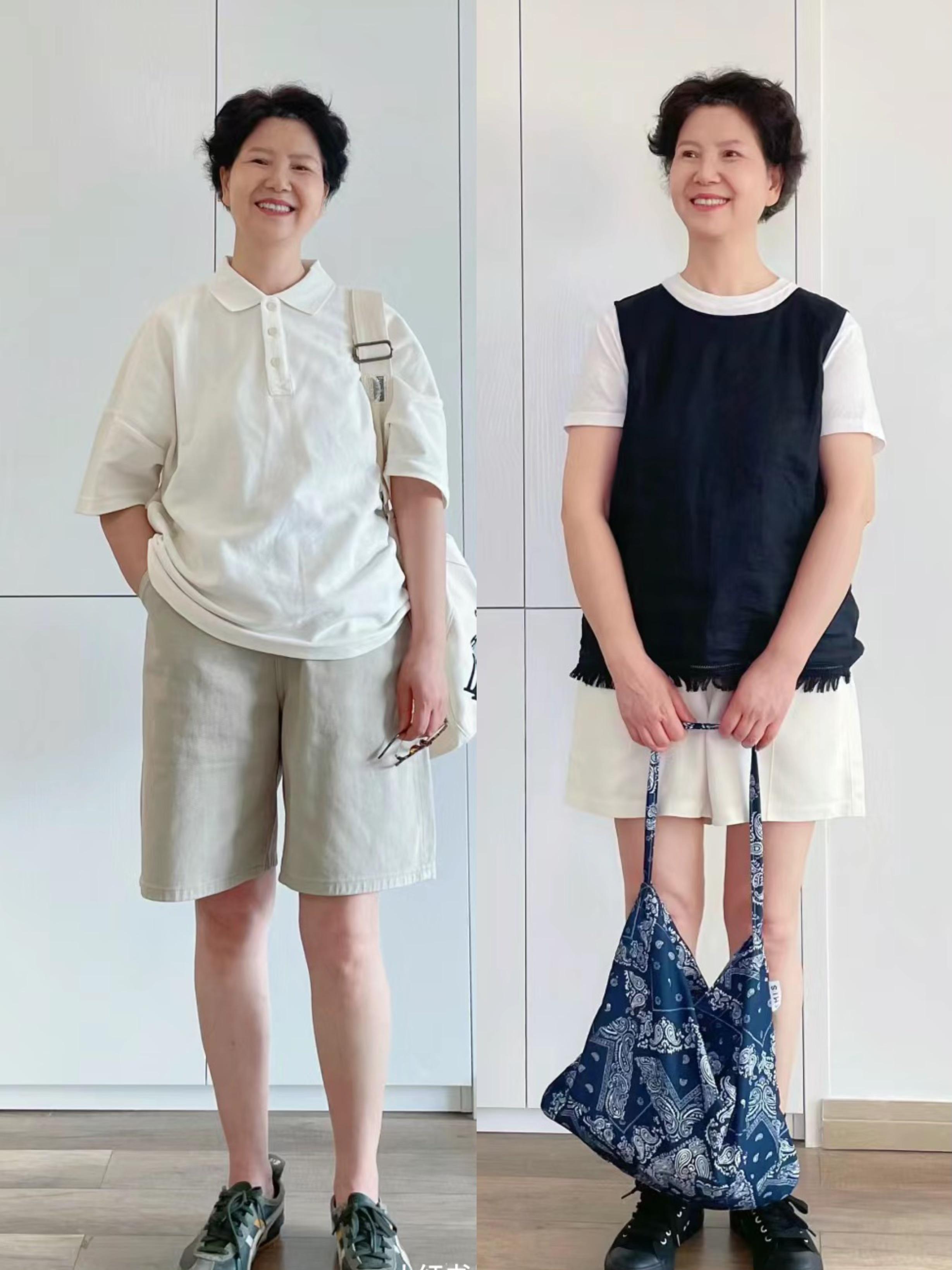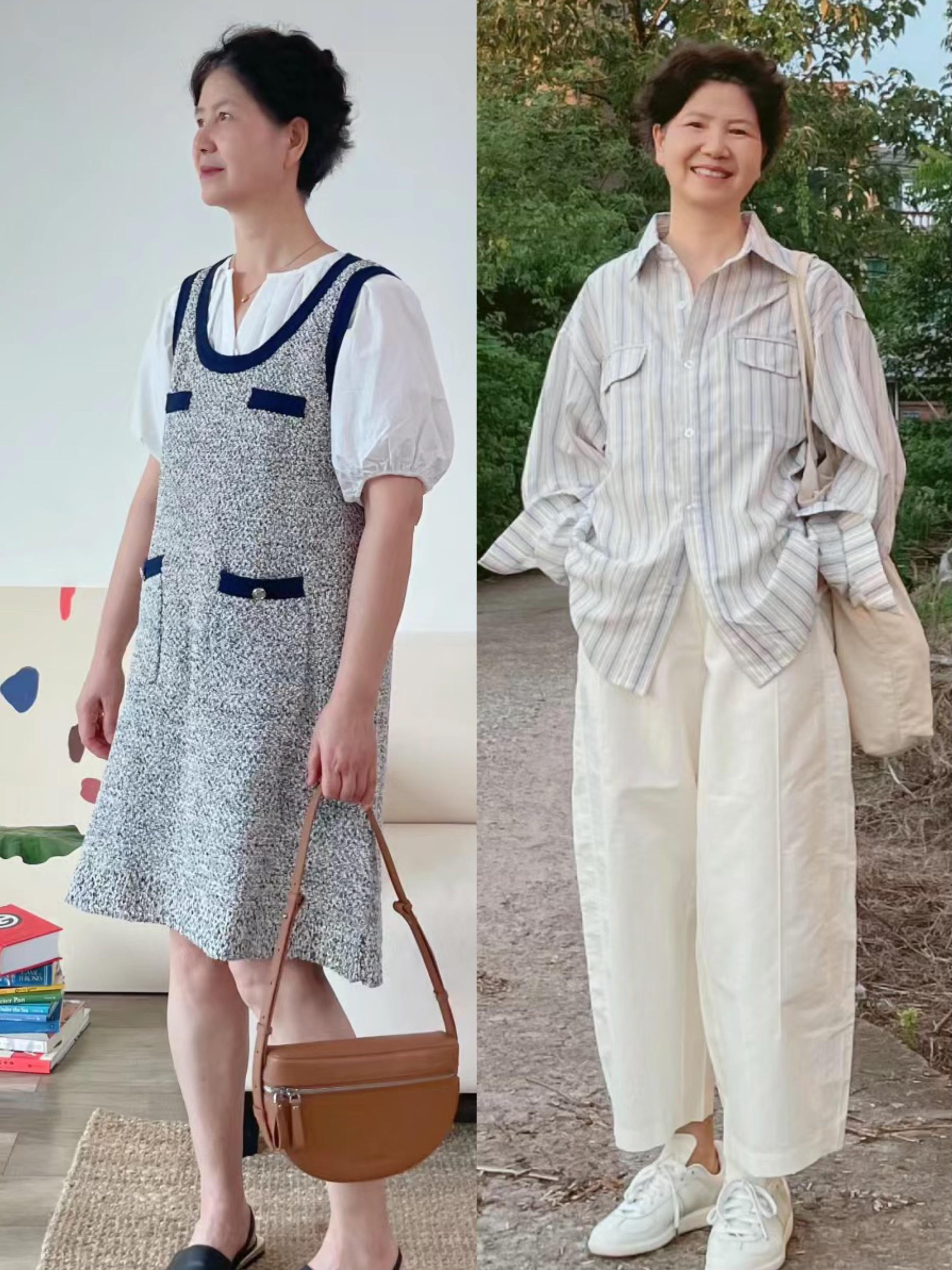 在小蘇阿姨的穿搭中,並沒有任何老年人的痕跡。雖然她60+的年紀,但依然有着輕盈的身形、溫柔的笑靨、清爽舒適的穿搭方式。