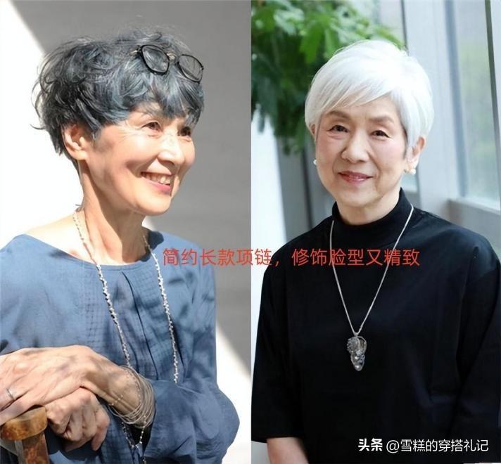 上了年紀的女性如果選擇幹練的短髮,同時結合精緻的首飾可以讓整體形象的品質感得到更好的提升。例如選擇精緻的耳環,如小巧的鑽石耳釘,不經意間凸顯造型的質感。或者是圓潤的珍珠飾品,也能增加整體造型的層次感,還可以點綴髮型,更加具有個性感。