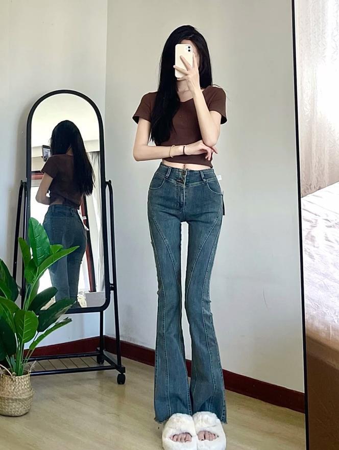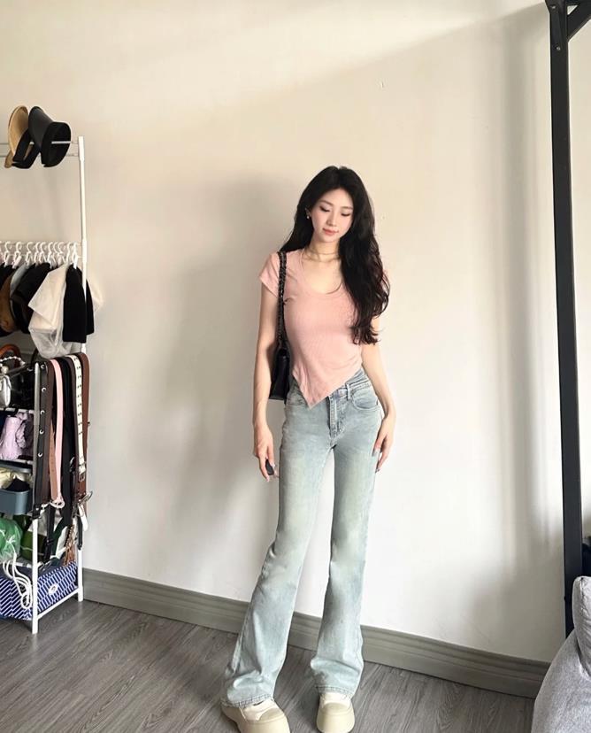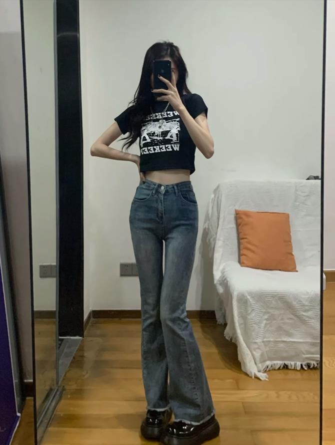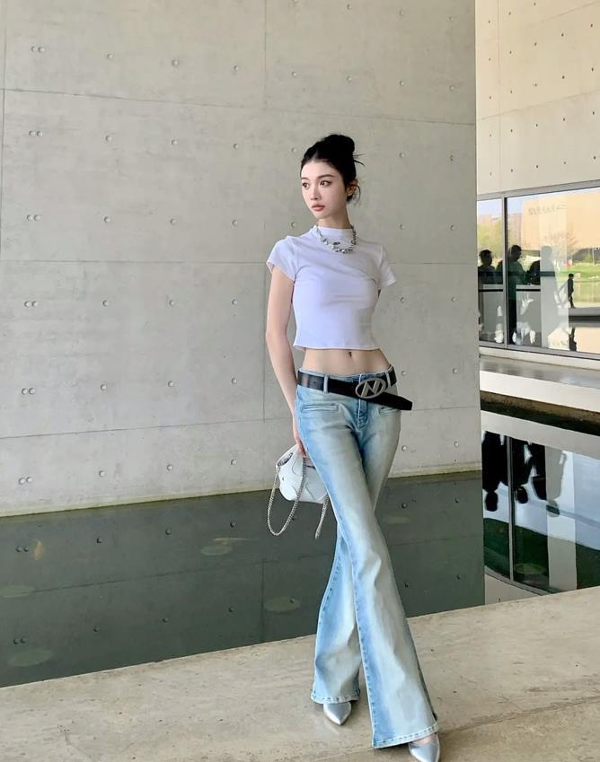 在挑選微喇褲時,一定要考慮高腰設計的款式,這樣才能更好提升腰線,拉長下身的比例。總之,短上衣配微喇褲這一對cp可是很顯高挑氣質的,通過合理的搭配,就可以穿出屬於自己的魅力。