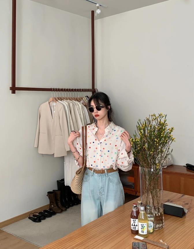 至於搭配上,波點襯衫也是極具百搭效果的,若是你想要打造一種休閒風格,那麼可以選擇配牛仔褲和運動鞋,這樣不僅保留了襯衫的趣味,又多了幾分隨性。
