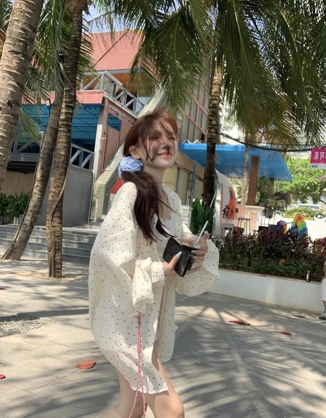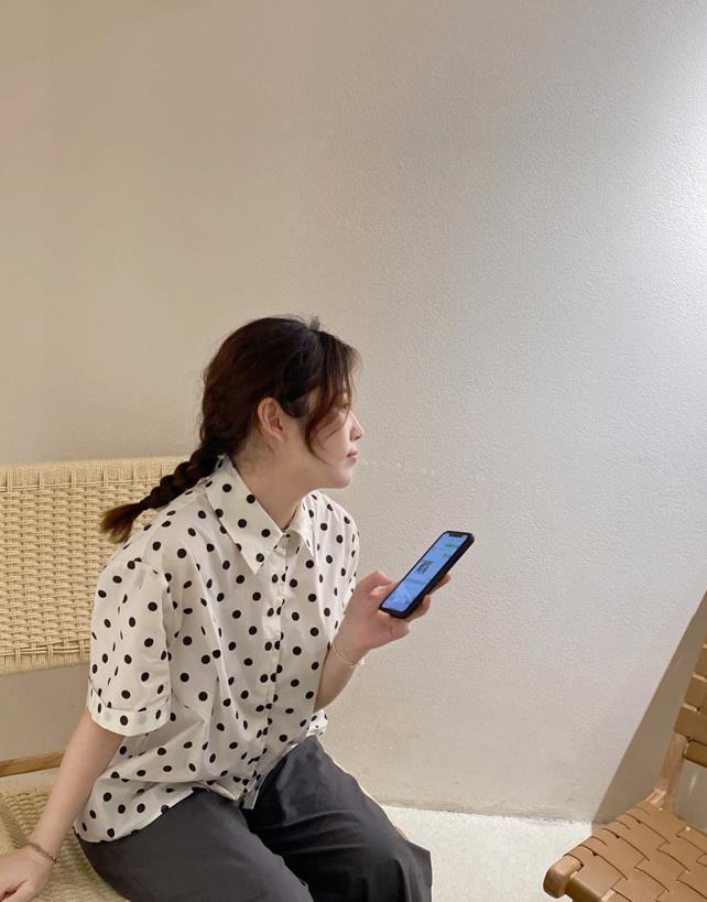 男朋友款式的波點襯衫,可以單穿,也可以直接當外套,在夏季,直接拿來做防曬衫就很不錯,在裏面搭一件背心或短袖,增加整體層次又時髦。