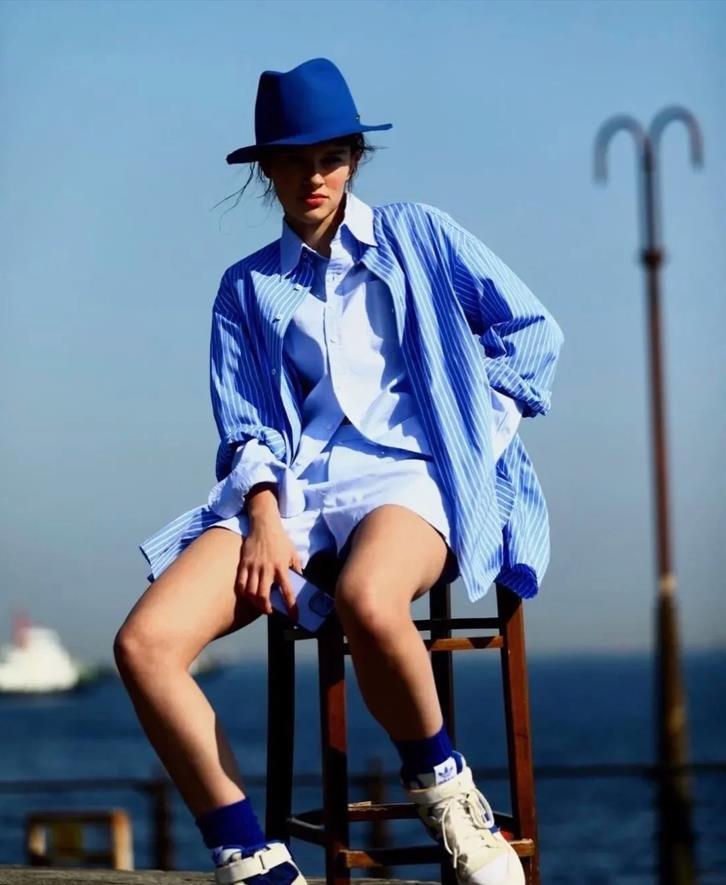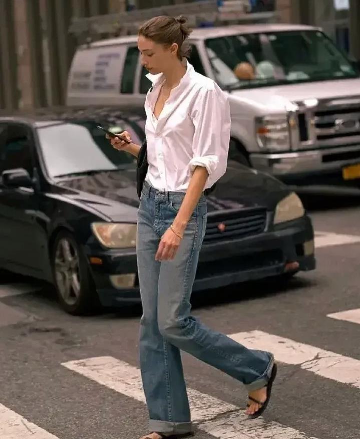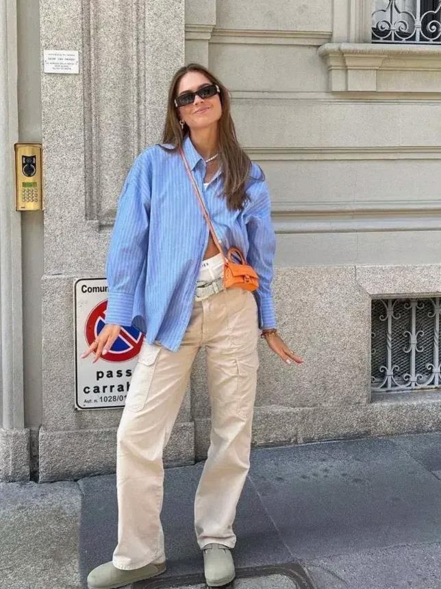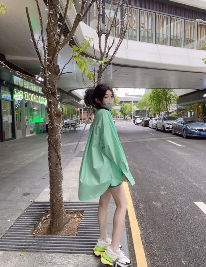 所以,今年“男朋友襯衫”火了,這種寬鬆版型的襯衫,對各種身材都沒有約束感,當然,在選擇這件襯衫時,也要利用到一些穿衣技巧,首先是襯衫的長度,不適宜太長,只要稍微遮掩過臀部位置就行,這樣既可以顯得隨性又不會太拖沓。