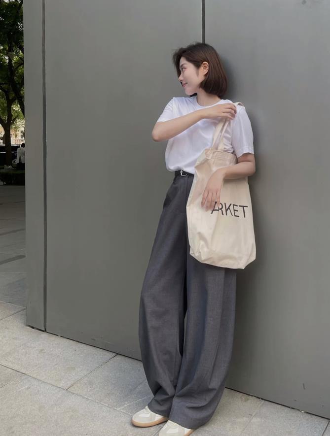 t恤作爲時尚圈裏最時髦經典又耐看的單品,無論與什麼下裝相配,基本上都是不容易出錯的,除了選牛仔褲搭配之外,闊腿褲也是一個很不錯的選擇。