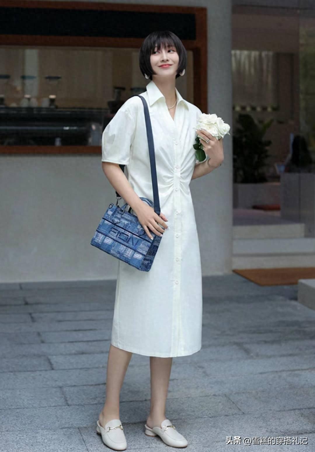 若你是小個子,那麼更要換上一雙小量感的穆勒鞋,就算是平底的設計,也完全沒有顯矮壓身高的問題,搭配一條過膝長度的圓領襯衫裙,簡約又幹練。