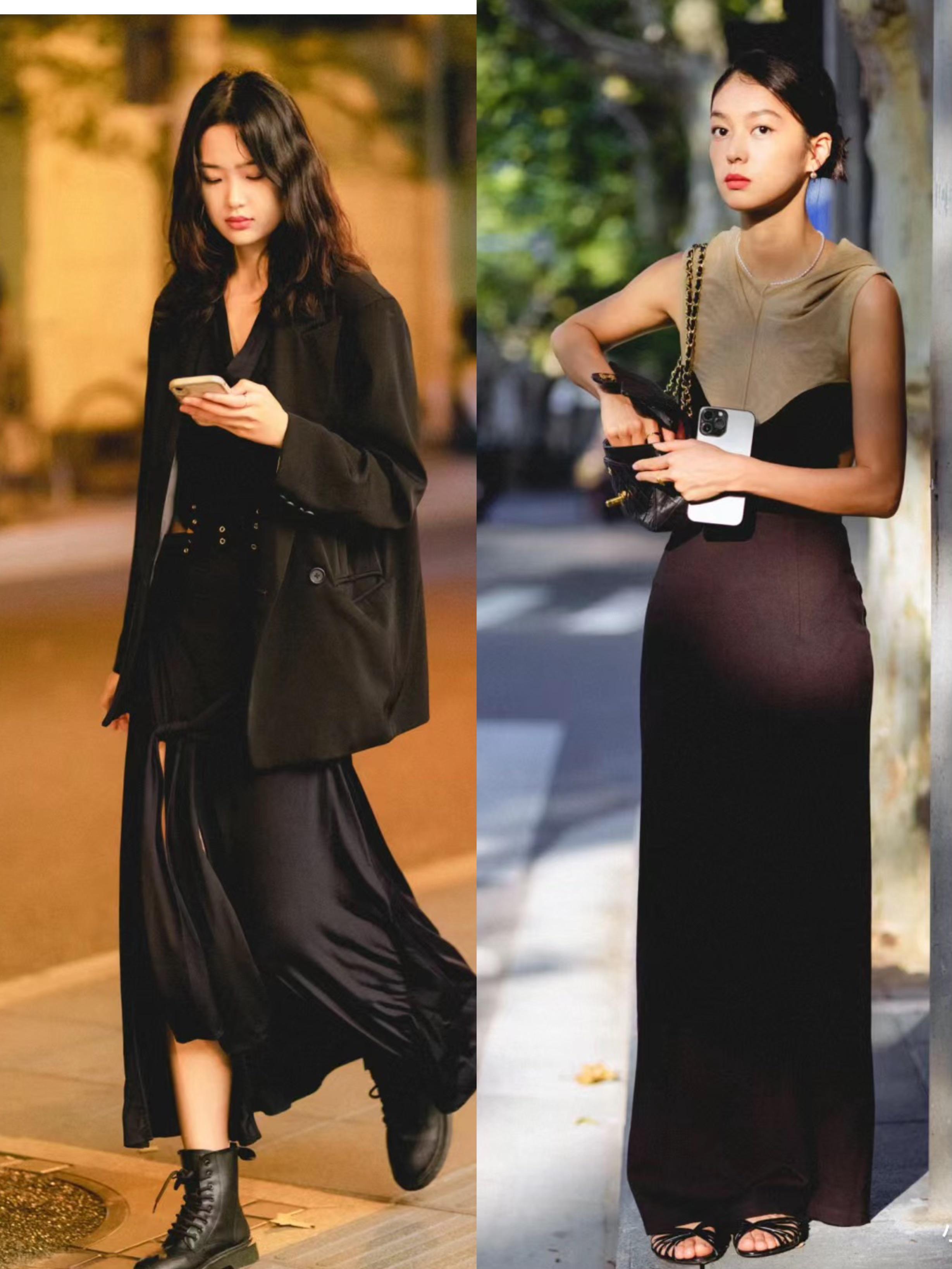 看似隨意的搭配,卻可以在細節上彰顯着高級美。比如黑色的膝下裙,配一雙V口的短靴,這種穿搭隨性舒適、也多了幾分酷颯。