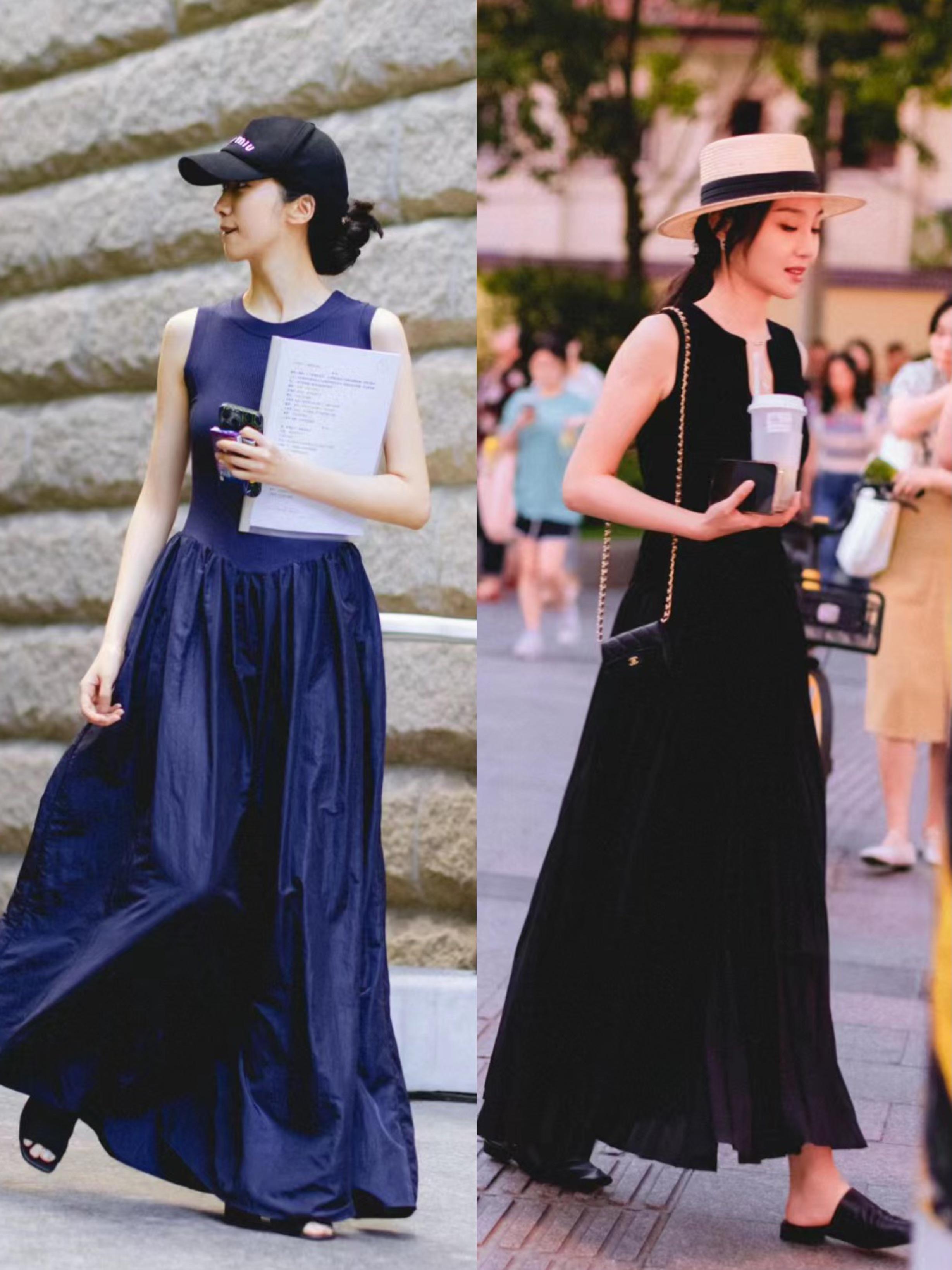 其實用膝下裙來搭配平底的涼拖、或者平底的單鞋,都是不錯的方式。這種注重舒適度的穿搭,也更加體面大方。