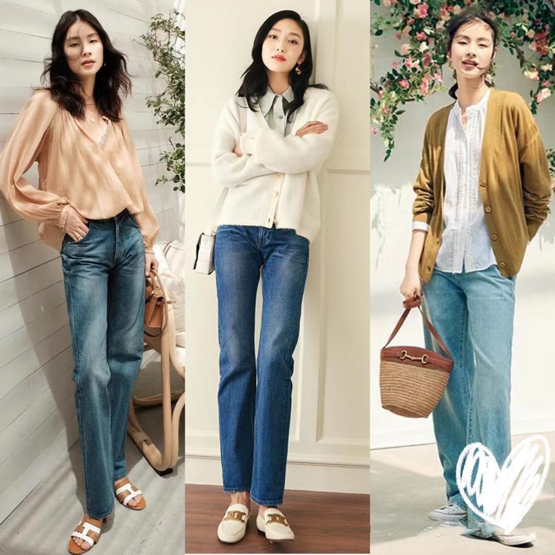 比如寬鬆的襯衫,或者針織衫,我們都可以配高腰的直筒褲來穿着。簡簡單單的直筒褲,舒適又輕便、給人一種清爽大氣的美。高腰的直筒褲,儘量選擇腰部合身的剪裁。