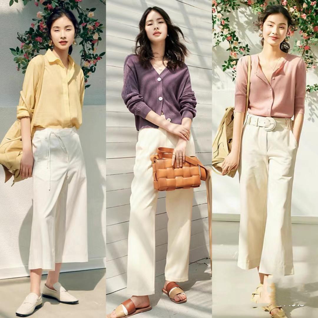 春夏季節,基礎款的服裝也有很多。比如修身的吊帶、T恤,寬鬆的襯衫、針織衫,高腰的闊腿褲、半身裙,輕便舒適的鞋子等等。