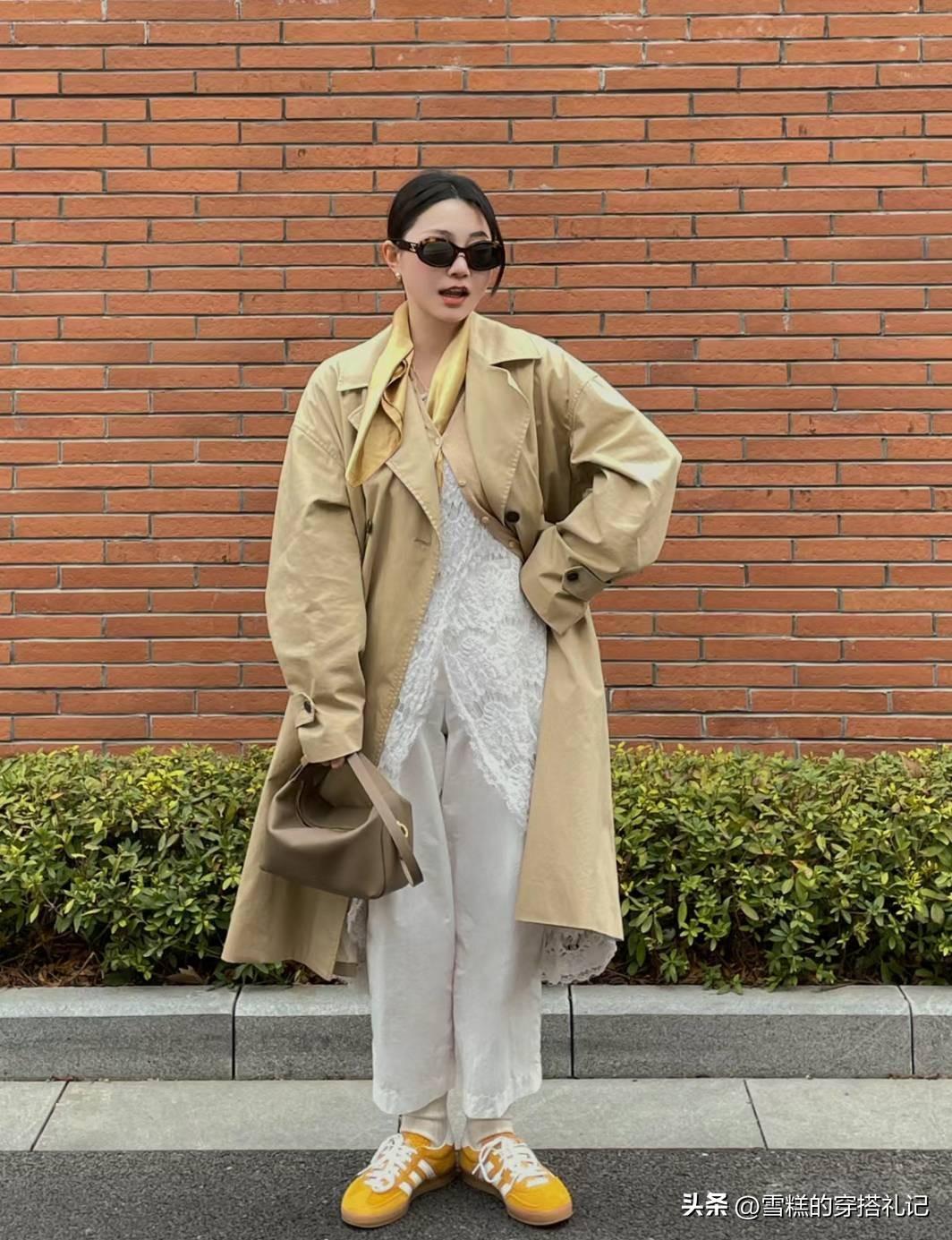 像這種看不出年齡的穿搭,在色彩上就要花點功夫,比如可以選擇一雙亮黃色德訓鞋,跟鵝黃色絲巾形成呼應,精緻又時髦。