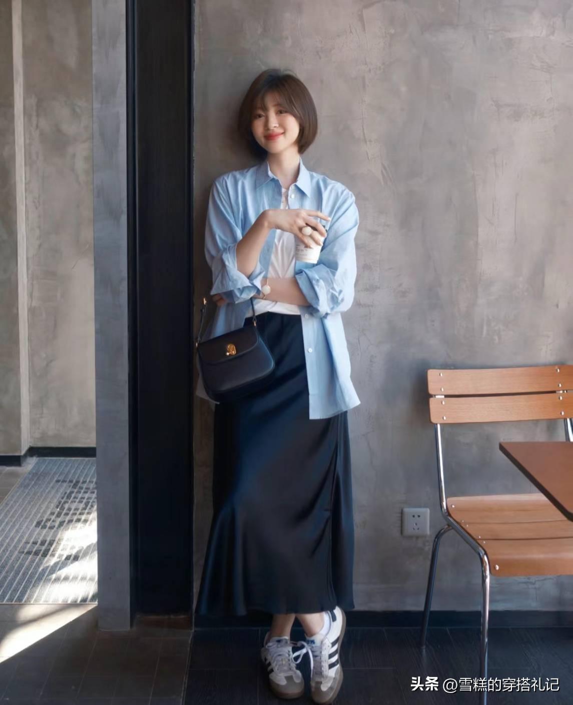對於職場女性來說,穿衣服不必總是過於嚴肅古板,穿膩了西裝高跟鞋,偶爾嘗試一下絲綢裙和德訓鞋,再搭配一件遮臀長度的襯衫,可以讓氣質更出衆。