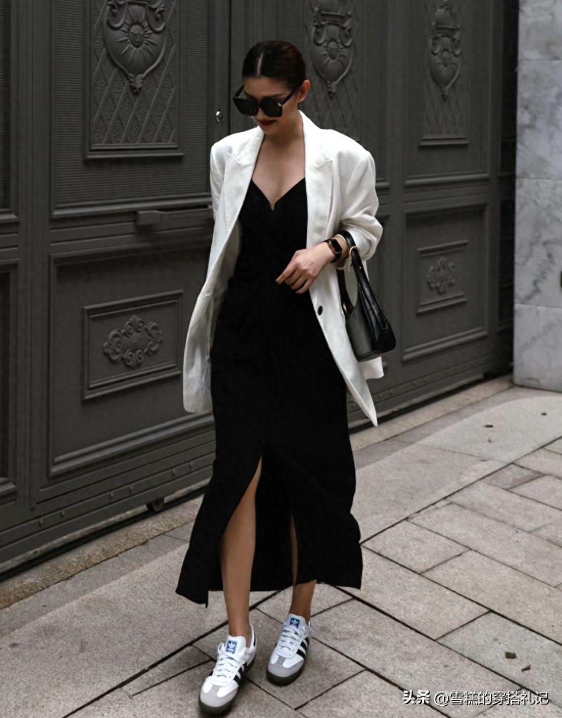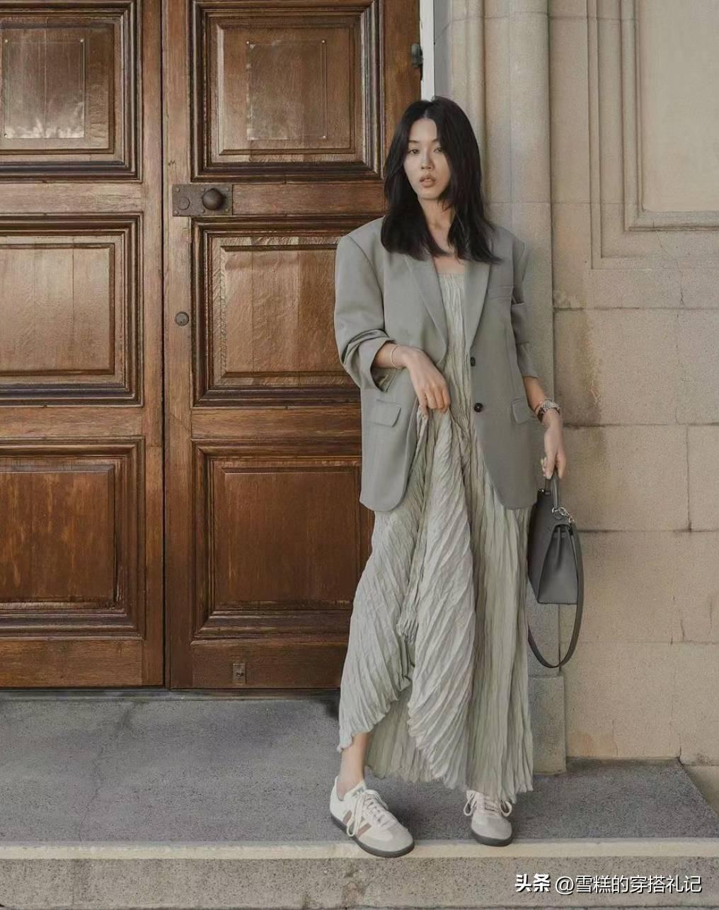 德訓鞋是屬於量感較小的款式,沒有很厚的鞋底,也沒有特別大的鞋頭,所以很適合搭配一些量感大的衣服,比如大裙襬的連衣裙、挺括有型的西裝、慵懶感的毛衣……