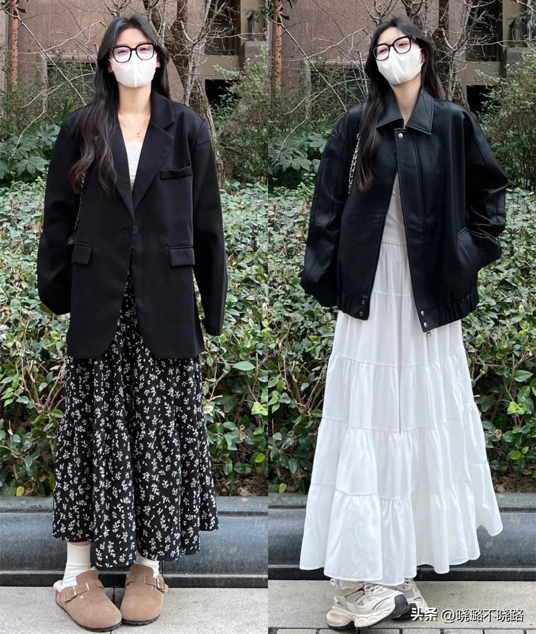 三、春季裙裝搭配,穿“花”or穿“素”各有搭配之法
