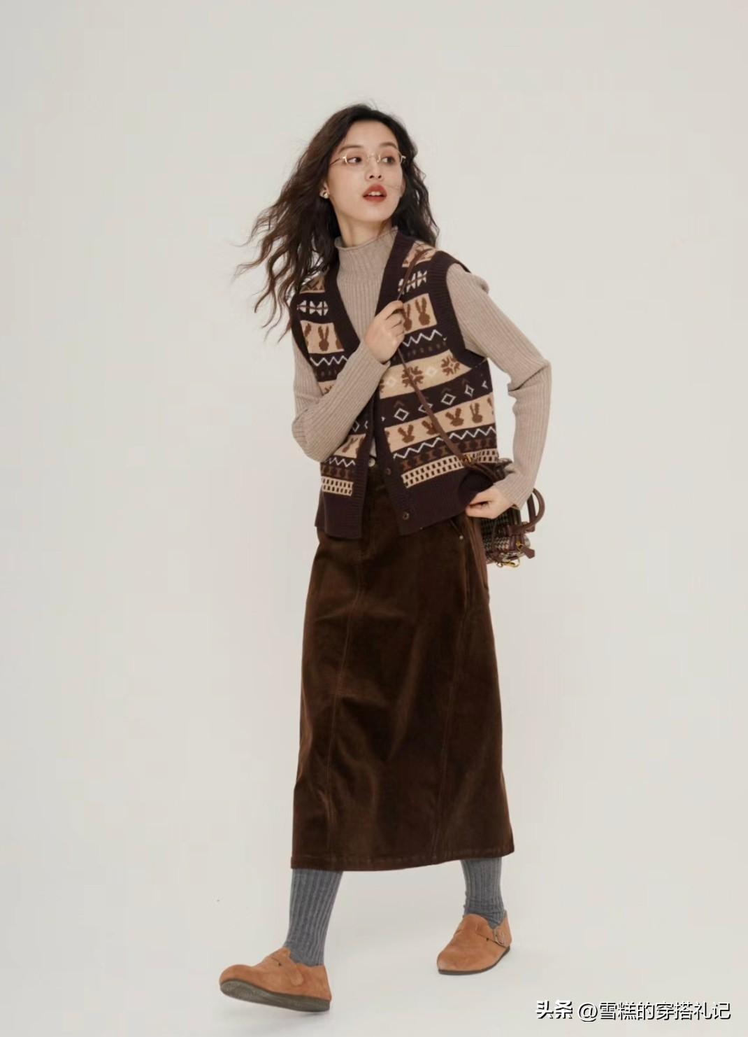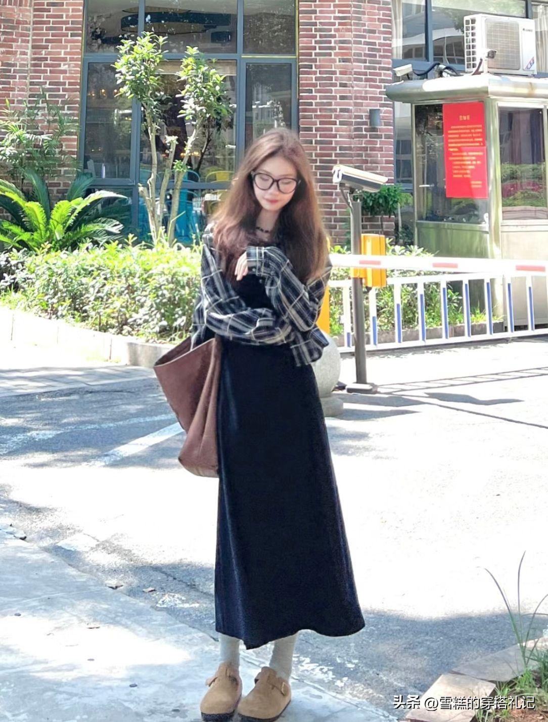 長裙在選擇其他搭配搭檔的時候,其實從色系出發的話,還是要推薦各位可以將暗色調進行優選,尤其是我們本身的粗壯感或者是微胖感比較明顯一些,經典的黑色系或者是絕對的暗色調搭配,它的顯瘦效應是非常明顯的襯托力也是很足的。
