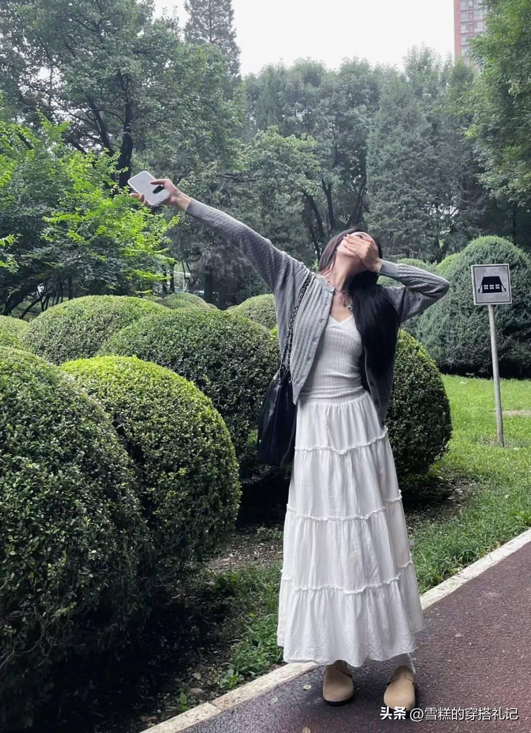 不管長款的裙裝要與什麼樣的鞋子進行搭配,在我們的穿搭當中它絕對是佔據了絕大多數的面積的,所以建議大家還是要注重更加具有優勢的版型進行優選。那麼第1個高度標準就建議大家還是要優先於高腰的設計進行搭配,這是必然且必要的。