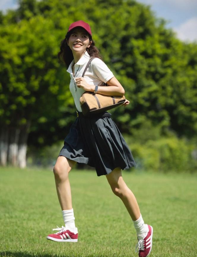 如果你選擇了一件淺色的短袖polo衫,那麼,下裝可以配一條深色的半裙,經典的配色,是永不出錯的,也能打造出層次感。一雙休閒的鞋子,一個精緻的包包,就能讓你變得出衆時髦。