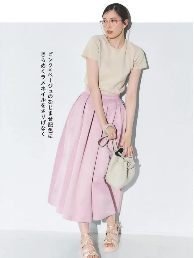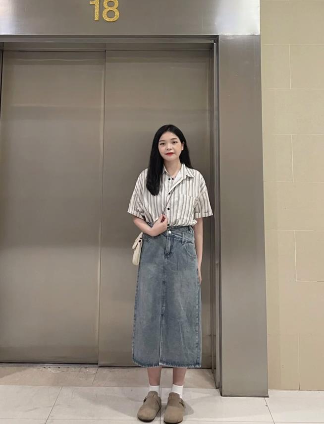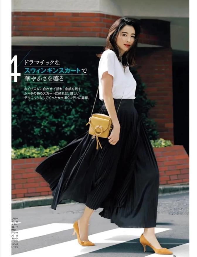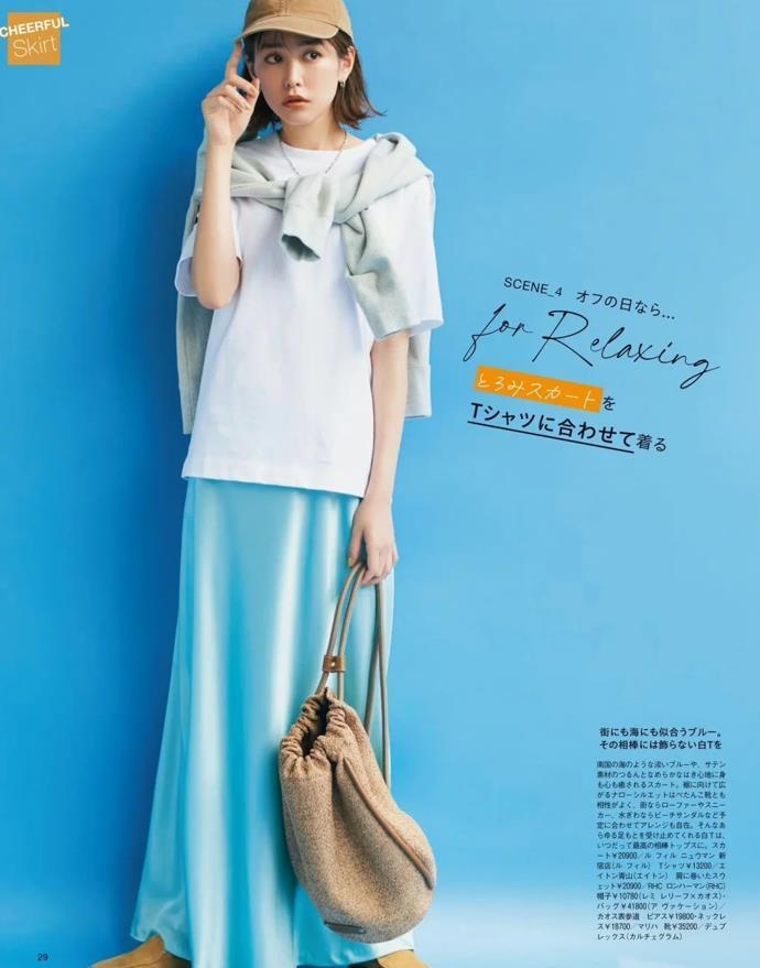 在選擇短袖t和半裙的時候,一定要注意下其材質,如果你想要打造出輕盈飄逸的既視感,那麼要選擇雪紡、緞面材質的半身裙,這樣不僅舒適還很顯優雅。若是想打造出隨性自在的風格,可以選擇牛仔、棉麻材質的半身裙,與純棉的短袖t相配,很輕鬆自在。