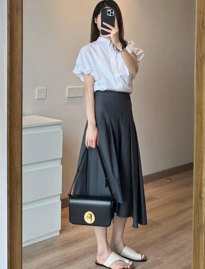 半裙的款式有很多,姐妹們在挑選時,需要根據自己的穿着風格,以及身材實際情況去挑選。直筒版型的半裙,很藏肉顯瘦,還有a字版型的也是一樣,與基礎款短袖T相配,真的很好看。