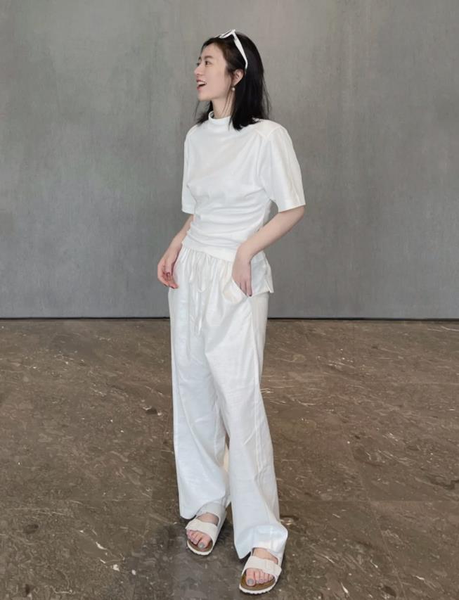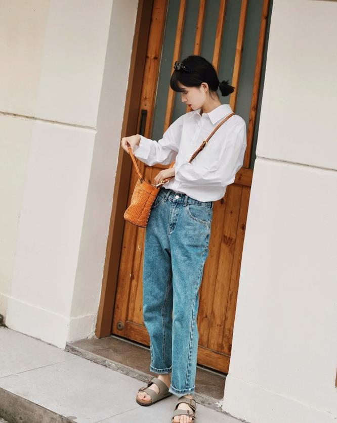 如果你更偏好褲子,那麼牛仔褲、闊腿褲和休閒褲都是你不錯的選擇,牛仔褲最經典百搭,與勃肯涼鞋的休閒風格很好呼應起來,褲子的面料也要選擇透氣性好些的,這樣才能讓你在夏季的穿搭裏保持着清爽。