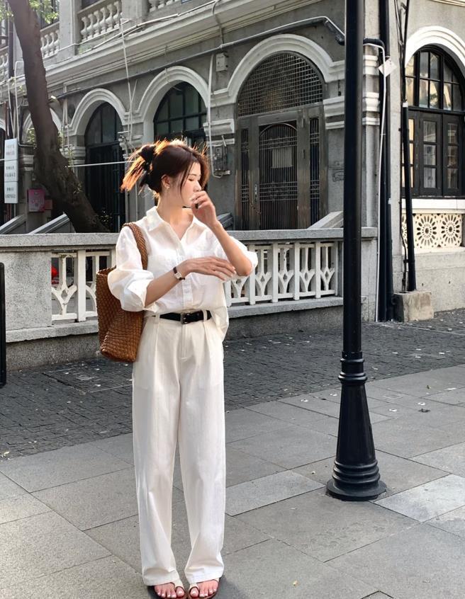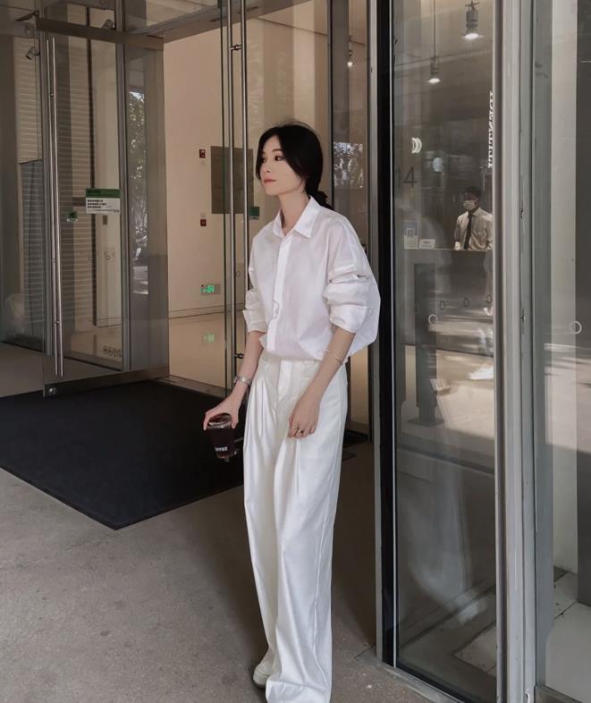 除了白色t恤之外,白色襯衫也是時尚界裏不可小覷的單品,它的實用性也是超強的。白色襯衫搭配白色半身裙子,輕鬆打造出你想要的幹練與氣質,也不失優雅溫柔。