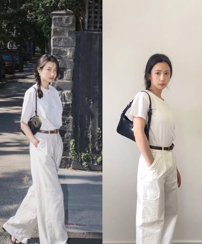 白色的t恤和白色褲子搭配,無疑是深受衆人喜歡的,也非常適合春夏季節,這種同色系的搭配,不僅展現出色彩的和諧統一,又能讓你穿出優雅氣質,不管是休閒街頭風,還是職場幹練風,都能輕鬆hold住。